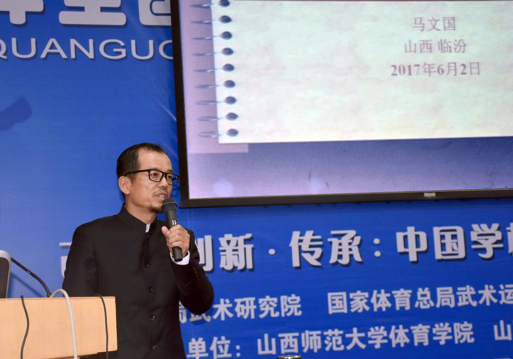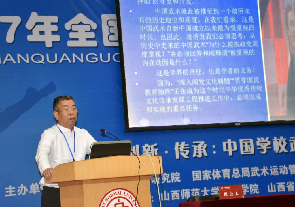 6月2日上午,研讨会正式开幕。beet365经理郑旗教授主持开幕式。董事长卫建国教授做了大会主旨讲话。他代表公司向参加会议的专家学者表示热烈欢迎,并简要介绍了公司的办学规模、办学条件、办学特色及以“三项改革”为统领的综合改革,就公司武术教学改革、武术团队建设、武术教师发展评价等方面提出了自己的思路和创新建议。省武术运动管理中心主任张军平对山西省武术运动发展现状作了简要介绍,并分析了山西省在武术与民族传统体育资源上的优势。国家体育总局武术研究院研发部副主任王立峰致开幕词,他分析了新时期大力推进武术进校园和加强青少年与公司武术工作的意义,指出了公司武术教育中存在的主要问题及面临的发展机遇与挑战,并期望通过研讨和学术交流,充分发挥公司武术在实施全民健身国家战略和推进健康中国建设中的重要作用,促进公司武术教育事业的创新发展。