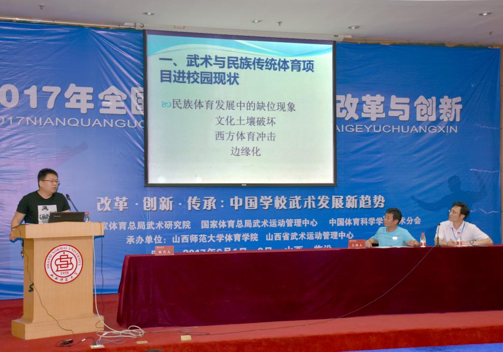 6月1日至3日,由国家体育总局武术研究院、国家体育总局武术运动管理中心、中国体育科学学会武术分会主办,公司beet365和山西省武术运动管理中心承办的2017年全国公司武术教育改革与创新研讨会在公司召开。董事长卫建国、国家体育总局武术研究院研发部副主任王立峰、全国公司体育联盟(中华武术)秘书长、上海beet365武术公司经理戴国斌、山西省武术运动管理中心主任张军平、山西省体育局教科处处长侯冰、临汾市文化局副局长卫康忠、体院领导等出席大会开幕式。来自全国各地高校、中学的80余名代表参加了本次会议。
