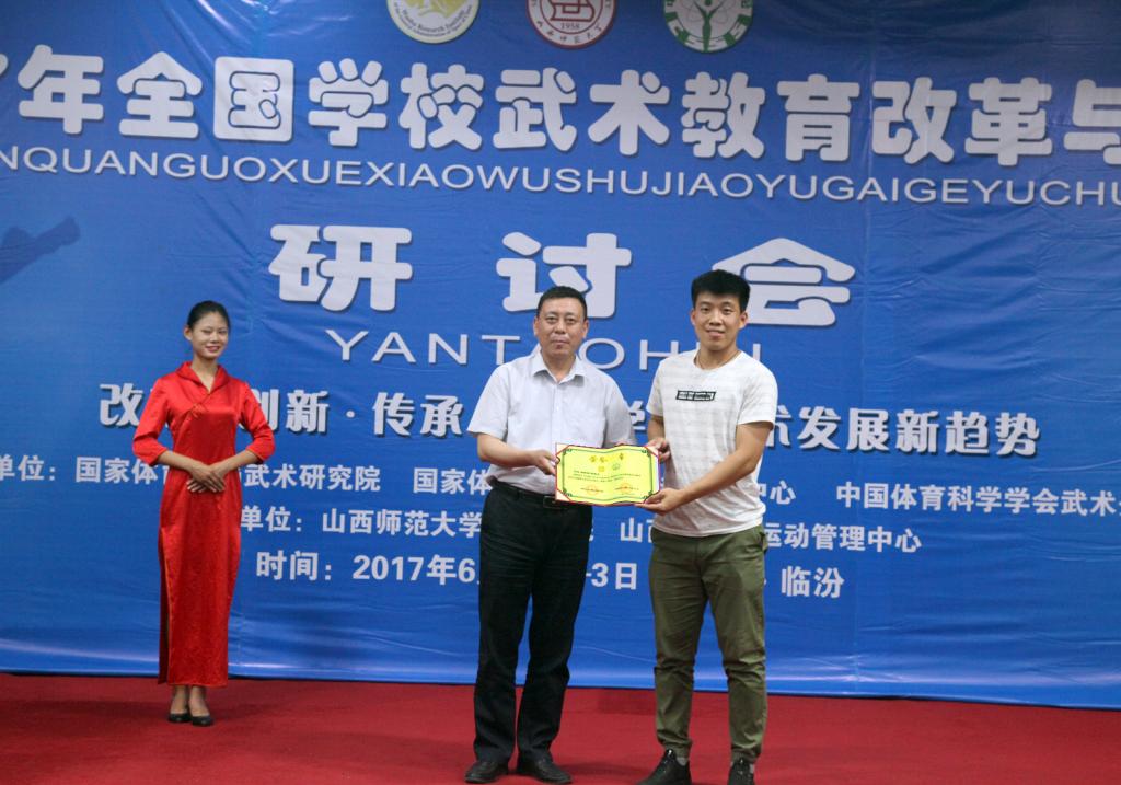本次会议共有79篇论文入选,6月1日下午,大会学术专家组对入选论文进行了评审,9篇论文获一等奖,12篇论文获二等奖,20篇论文获三等奖。山西省武术运动管理中心主任张军平、山西省体育局科教处处长侯冰、beet365经理郑旗在闭幕会上为获奖作者进行了颁奖。
