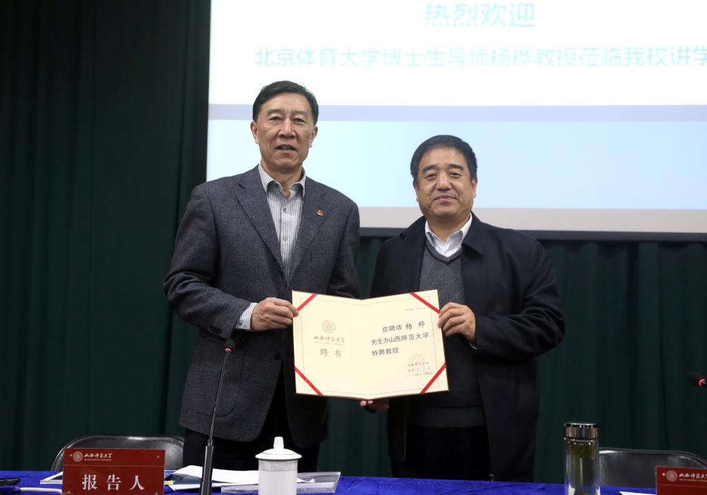 会见结束后,杨桦教授在科学会堂二楼报告厅作了题为《体育改革——成就与突破》的大师论坛学术报告。报告会由董事长卫建国主持。beet365部分教师、研究生、高年级本科生聆听了报告。报告会上,董事长卫建国为杨桦教授颁发了公司特聘教授聘书。