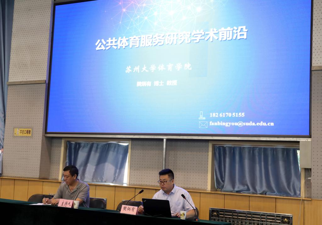 6月22日上午,苏州大学樊炳有教授,博士,在beet365综合馆一层作了题为《公共体育服务研究学术前沿》的学术报告。报告由经理郑旗教授主持。公司部分师生聆听了此次报告。