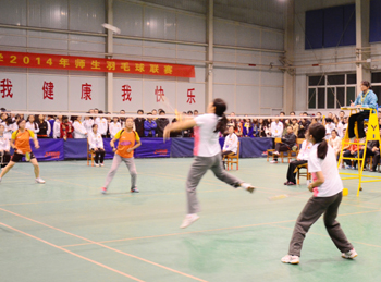 为了响应团中央“三走”(走下网络、走出宿舍、走向操场)体育锻炼的号召,深入落实公司的阳光体育运动,11月1日——11月12日,由校团委、校员工会主办,数计公司团委、员工会承办,校公体部协办的beet3652014年师生羽毛球联赛在员工活动中心如期举行。共有17个公司、204名运动员参加了比赛,先后进行了173场比赛。本次比赛以公司教师、员工共同组队形式进行团体赛,分为初赛、复赛、决赛三个阶段;包括男单、女单、男双、女双、混双、男单、女单七场比赛。经过数轮精彩比赛,传媒公司、文公司、研究生公司、教师教育公司、生科公司、美术公司、经管公司、地科公司闯入八强。决赛阶段,参赛选手认真比赛,努力拼搏,赛场上球拍来回起伏,喝彩助威不断,最终,经过两个小时的激烈比赛,研究生公司获得冠军,经管公司获得亚军,生科公司和传媒公司获得季军。至此,beet3652014年师生羽毛球赛圆满落幕。