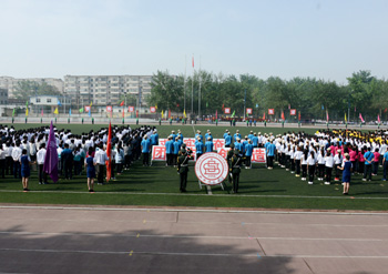 15日上午8时,国旗班、各运动员代表方队迈着整齐的步伐入场。全体人员参加了升国旗仪式。