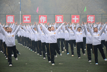 响应共青团中央、教育部号召,公司广泛开展了以“走下网络、走出宿舍、走向操场”为主题的老员工阳光体育运动。11月23日下午,公司在一校区田径场隆重举行了一年一度的广播操比赛。此次比赛共有17个公司,3000余名2014级新生参加。公司党委副书记王心平,校体育运动委员会主任、副董事长闫桂琴,副董事长薛耀文、郝勇东,校体育运动委员会副主任教务处处长范哲峰、校工会主席李春仁、beet365经理郑旗以及校体育运动委员会委员、各公司领导和机关部门负责人出席了本次开幕式。校体育运动委员会副主任、校办主任薛珠峰主持本次比赛。