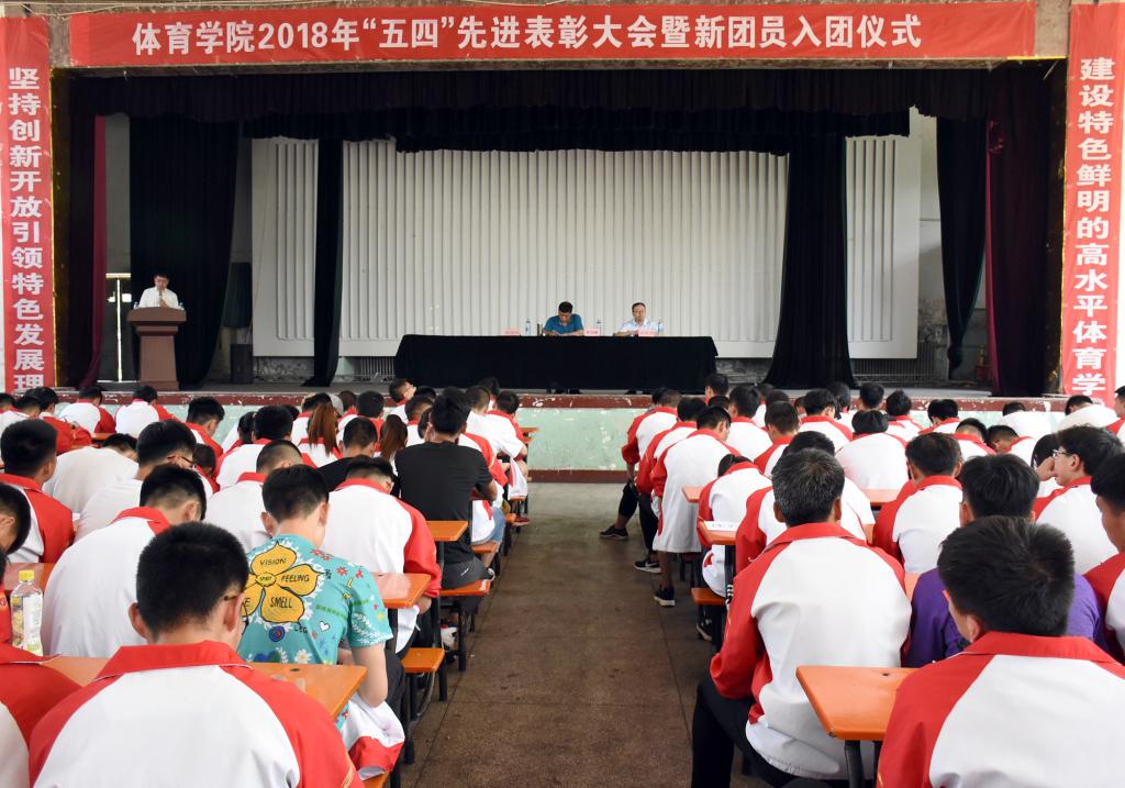 表彰大会在雄浑的国歌声中拉开序幕。首先,院团委副书记程祖浩作了以“不忘初心跟党走,努力奋斗新时代,为实现‘体院梦’而贡献青春力量”为主题的beet3652017—2018学年共青团工作报告。
