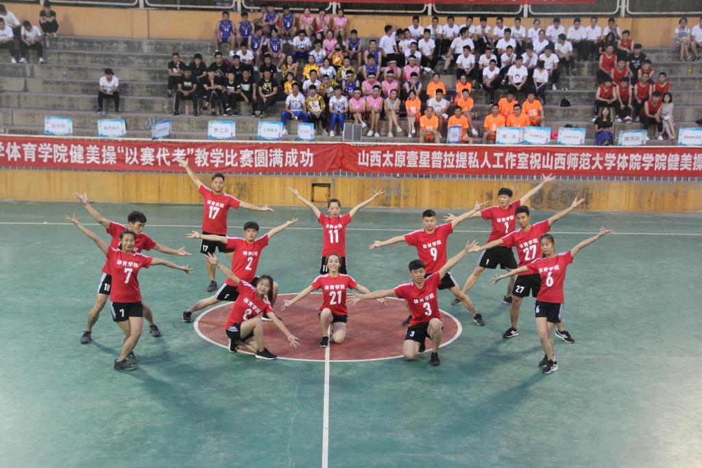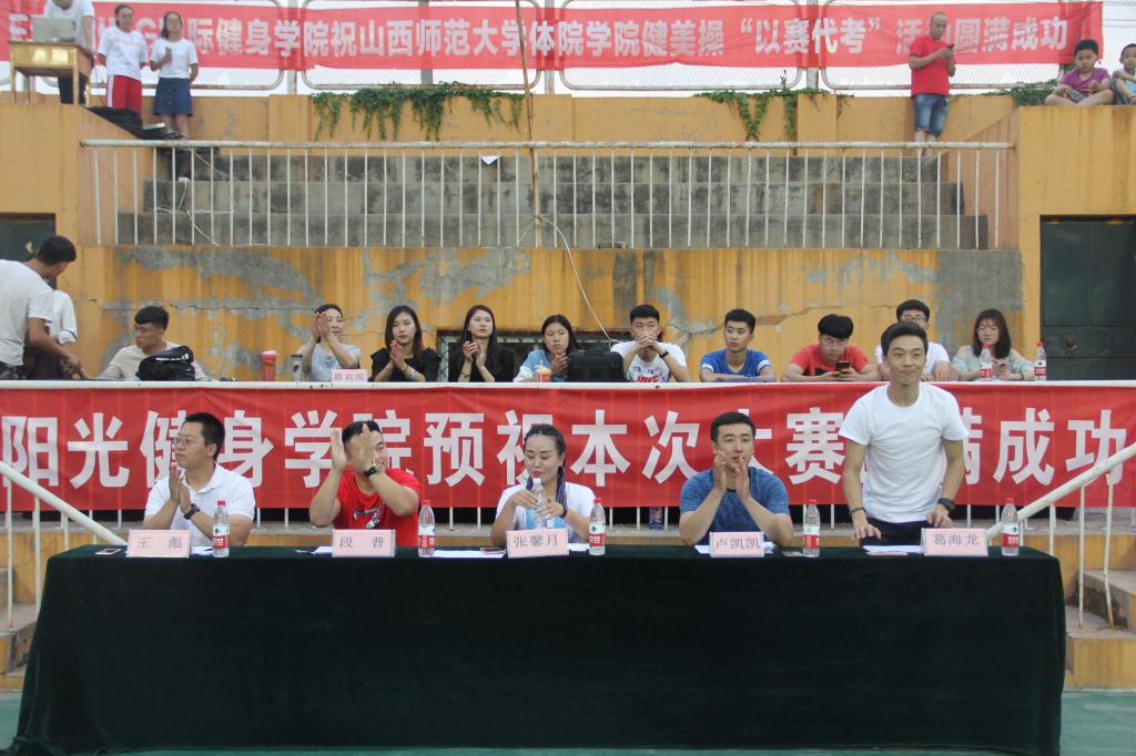 本次比赛裁判组由beet365实验中学健美操主教练国家一级裁判、全国优秀教练员山西省优秀裁判员教练员王彪;临汾市总工会健身协会会长、阳光健身公司创始人兼培训师、国家二级裁判员张馨月;临汾市总工会健身协会秘会长、阳光健身公司联合创始人集经理、泰美健身教授花园店店长段普;FEELING国际健身公司运营、 FEELING国际健身公司创始人卢凯凯;FEELING 国际健身公司培训总监、FEELING国际健身公司金牌导师葛海龙5人组成。本次健美操“以赛代考”教学比赛共有26支参赛队伍。