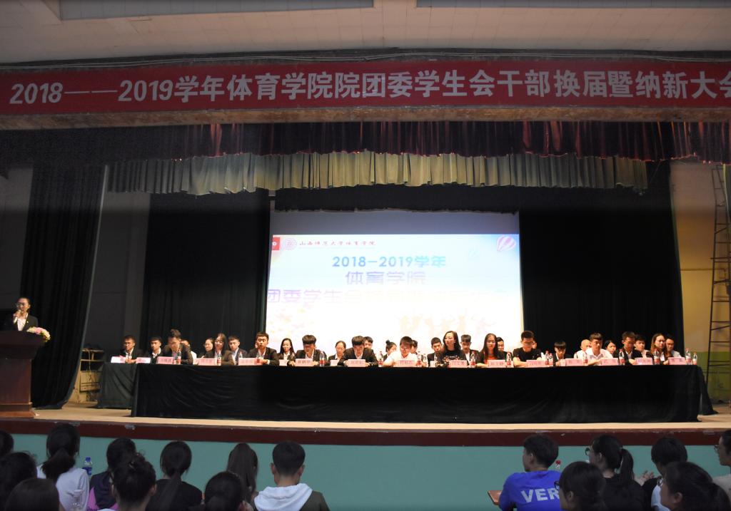 为适应团学工作蓬勃发展的新形势,进一步加强beet365团学组织的队伍建设。9月13日晚7点半,beet365于大礼堂举行了2018—2019学年院团学干部换届大会。院团委副书记程祖浩老师、18级辅导员闫文菁老师、院办公室郑文静老师、闫培烨老师出席;校员工会主席赵君如、兄弟公司员工会主席、beet365全体团学干部以及2018届全体新生参加了本次大会。
