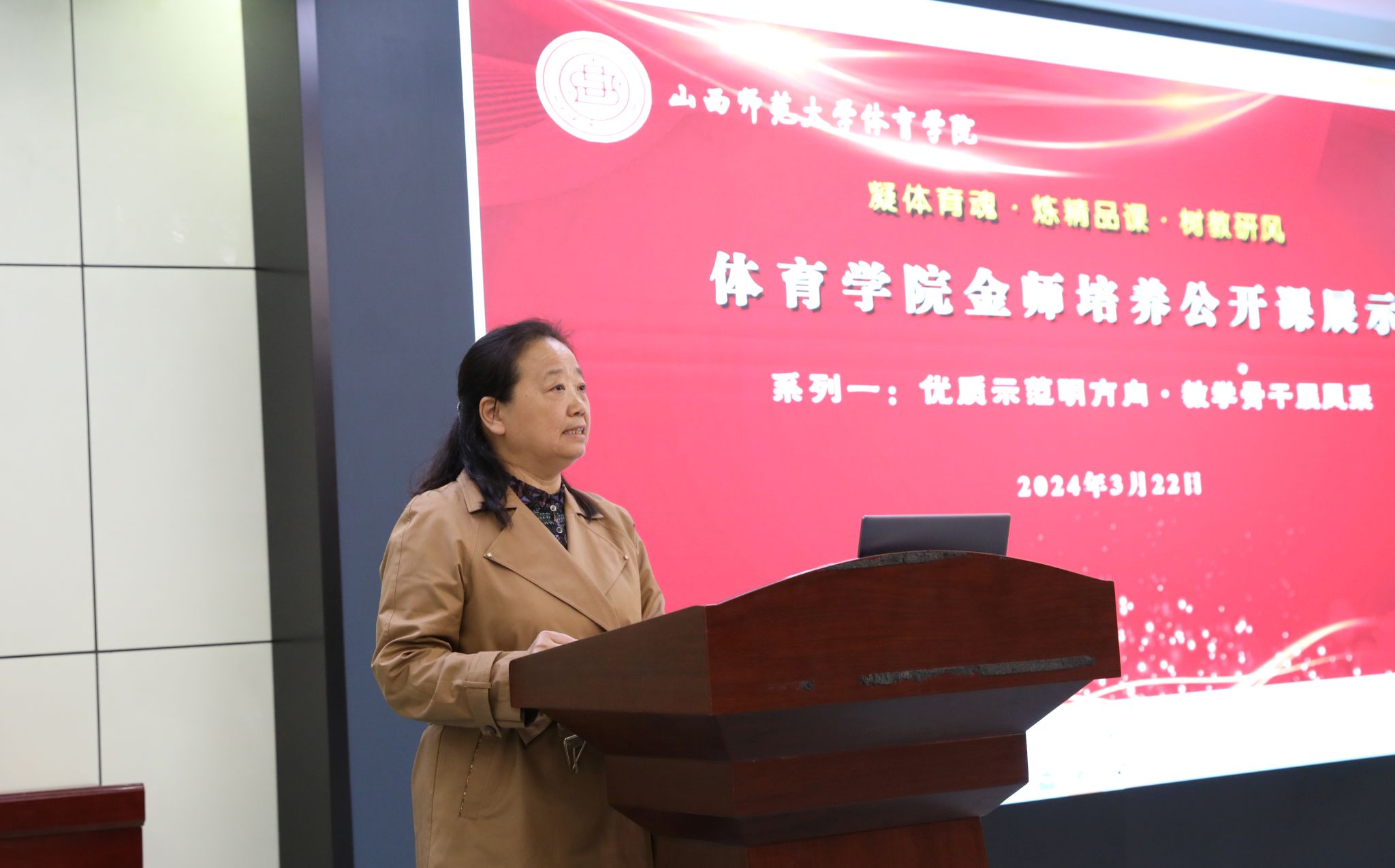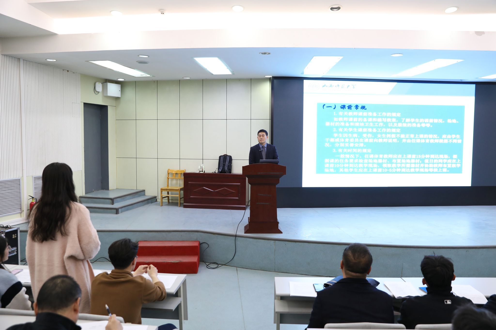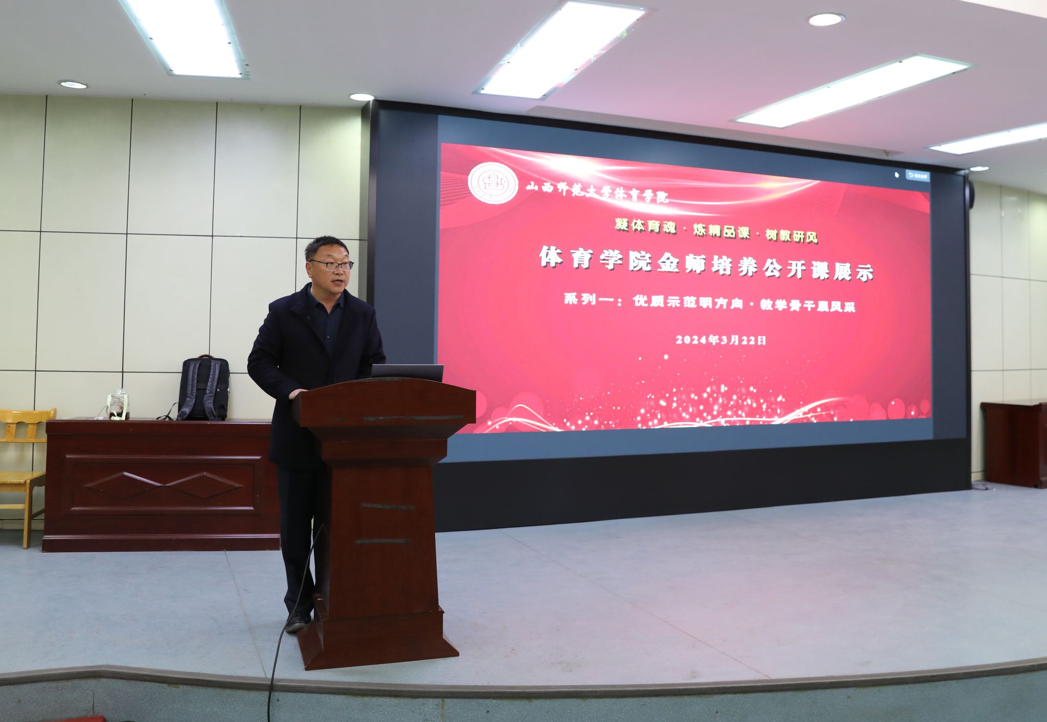 “优质示范明方向,教学骨干展风采”系列第三期展示于2024年3月22日下午2点在图书馆报告厅拉开序幕。beet365社会体育指导系主任李俊明(副教授),公开授课内容为《体育教学的实施》。校教学督导委员会委员、硕士生导师张迎春教授及beet365领导、全体教师、部分员工观摩了此次公开课展示。