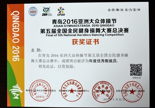 结束“华东师大杯”全国健美操联赛后,健美操代表队又踏上青岛“2016年亚洲大众体操节暨第五届全国全民健身操舞总决赛”的征程。本次大赛由亚洲体操联合会、国家体育总局体操运动管理中心、中国健美操协会主办,青岛市人民政府、青岛大学承办。公司张冠洁、刘艳欣、别馨雨、赵乾、张宇曦、王忻宇、闫晋、李凡8名运动员参加了本次比赛。经过为期五天的紧张激烈的比赛角逐,公司健美操代表队荣获FIG有氧踏板自选动作第一名、有氧舞蹈最高级别规定动作第二名,两个参赛项目同时荣获“特等奖”,教练员龙勋获得“年度优秀教练员”称号。(beet365 供稿)