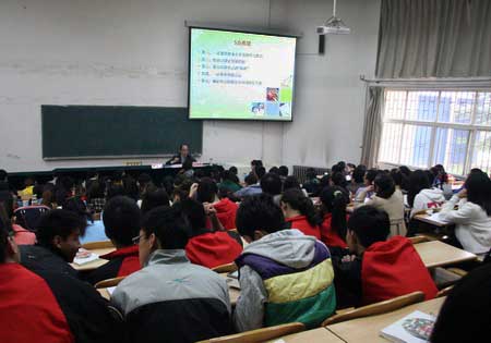 冉强辉教授首先给在场的研究生提出了珍惜学习机会、设定发展目标、着力培养“情商”、怀有感恩之心、确定研究方向或主题等五个方面的希望,而后就做体育硕士学位论文需要的信息捕捉能力、阅读理解能力、外语能力、发现问题意识能力、理论建构能力、文字表达能力等六个方面展开讲述,同时列举了许多典型的案例,生动直观地对论文撰写过程出现的十个主要问题进行了深入浅出的讲解,最后在与师生互动环节上,冉强辉教授细致耐心、诙谐幽默地解答员工提出的每一个问题,赢得了在场师生热烈的掌声。郑旗经理对冉强辉教授的精彩报告表示了感谢,同时对全体研究生提出了希望与要求,并鼓励大家积极主动学习,刻苦努力追求上进。