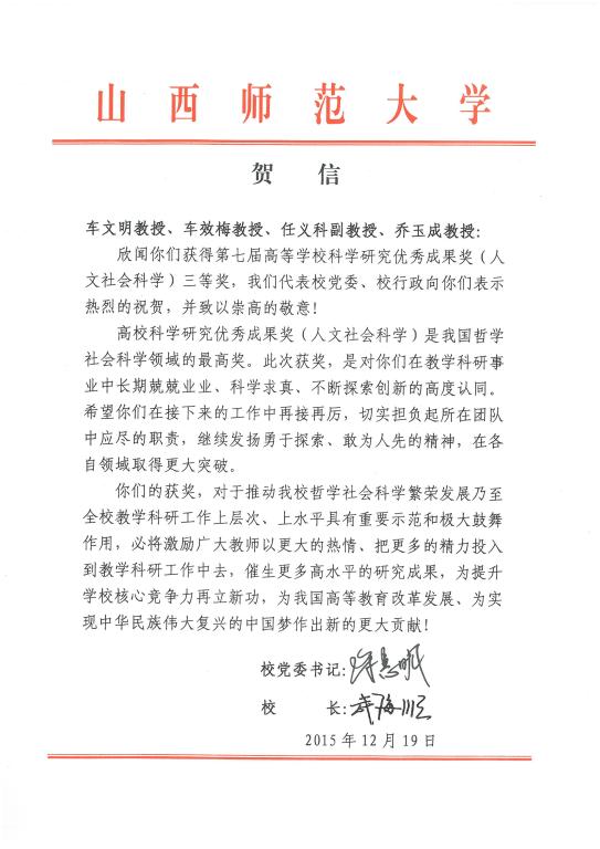 2015年12月1日,教育部公布第七届高等公司科学研究优秀成果奖(人文社会科学)获奖名单,公司乔玉成教授为第二作者的论文《社会转型视域下城市休闲体育生活空间的重构》获得第七届高等公司科学研究优秀成果三等奖。