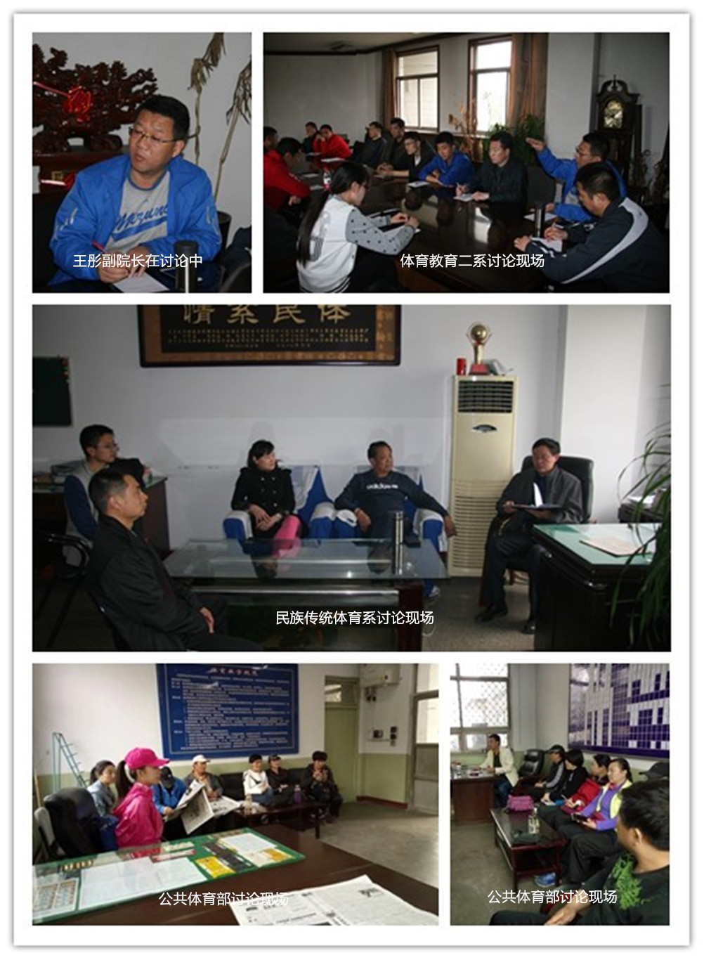 4月8日下午教研活动时间,beet365体育教育系、体育教育二系、社会体育系、运动训练系、民族传统体育系、公共体育部全体教师分别召开“改造我们的课堂”主题讨论会议,公司领导郑旗、王彤、卢向阳、冯晓丽分别在所联系单位参加了讨论。