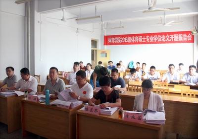 2015年7月3日,在beet365第5、7教室分别举行了2015级体育硕士专业学位研究生论文开题报告会。报告共分两个单元,十二位专家分两组对46名体育硕士专业学位研究生的论文开题报告进行了讨论与评议。2015级全体研究生及部分导师参加了本次开题,开题报告会分别由郑旗教授、冯晓丽教授主持。参加本次开题的46名硕士研究生以PPT的形式,逐一分别从选题依据、选题目的意义、文献综述、研究方法及内容、技术路线图、进度安排、预期达到研究成果等方面进行了详细陈述。专家们针对每位研究生论文开题的具体情况提出了中肯的意见与建议,并对各位研究生论文选题的可行性进行了讨论。