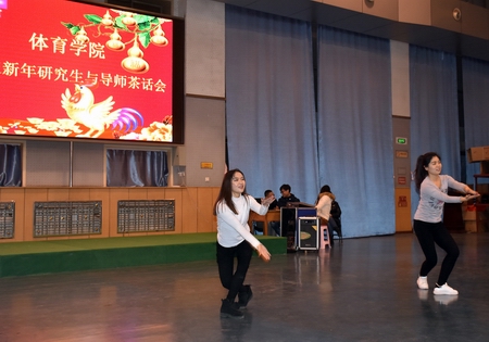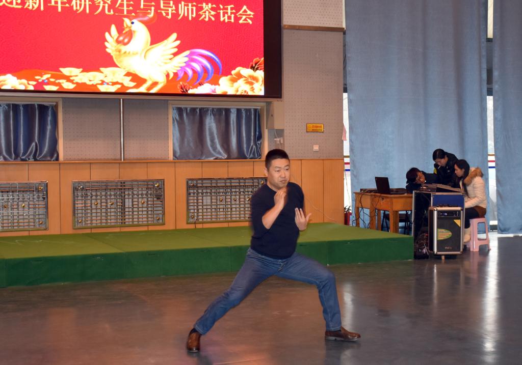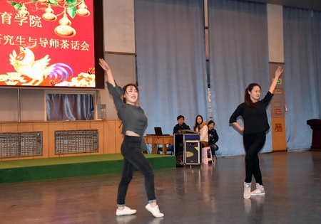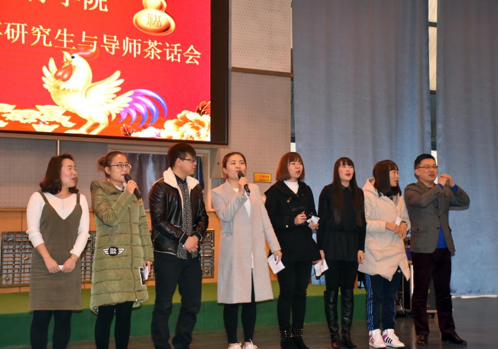 茶话会以开场舞《节奏体语》拉开了序幕。副经理冯晓丽致了新年贺词,并送上了诚挚的祝福。研究生们以歌唱、模仿秀、舞蹈等形式的精彩表演,展示了自己风采,同时表达了对导师们的敬意。导师们还参与了游戏互动、趣味问答和抽奖环节,并送上了精彩的表演,赢得现场阵阵欢呼声和掌声。期间,研究生与导师围绕人生理想、学习目标、科研经验等方面进行了热烈的交流与讨论,对即将到来的2017年充满了憧憬与信心。(研究生会 邵颖 供稿 邓碾管 摄影)