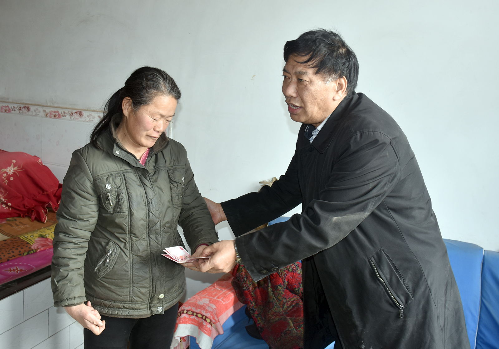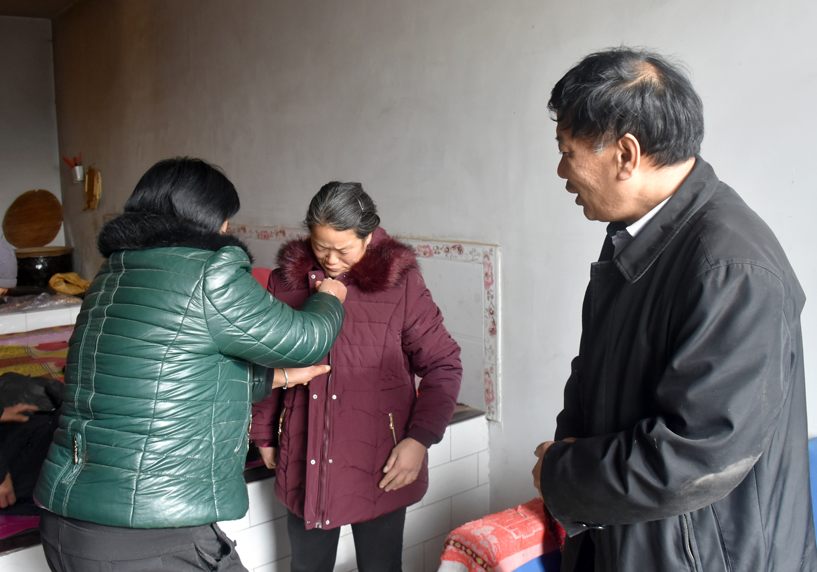2017年1月10日上午,beet365党委书记李学刚、院工会主席赵道卿、院办公室副主任邓碾管一行三人,来到吉县车城乡桃村结对帮扶户程彦忠家进行走访慰问。带着beet365全体教职工的牵挂与爱心,送去了米、面、油和过年服装,并送上了500元慰问金。程彦忠一家有三口人,本人智障,媳妇残疾,还有一个80多岁的老母亲。在其家中,李学刚书记详细询问了他们一年来的生产、生活情况和冬季取暖情况,与老人促膝长谈,了解他们的身体状况,祝福他们好好生活,要相信党、相信组织,过一个美满的春节。(院办/文 邓碾管/摄)
