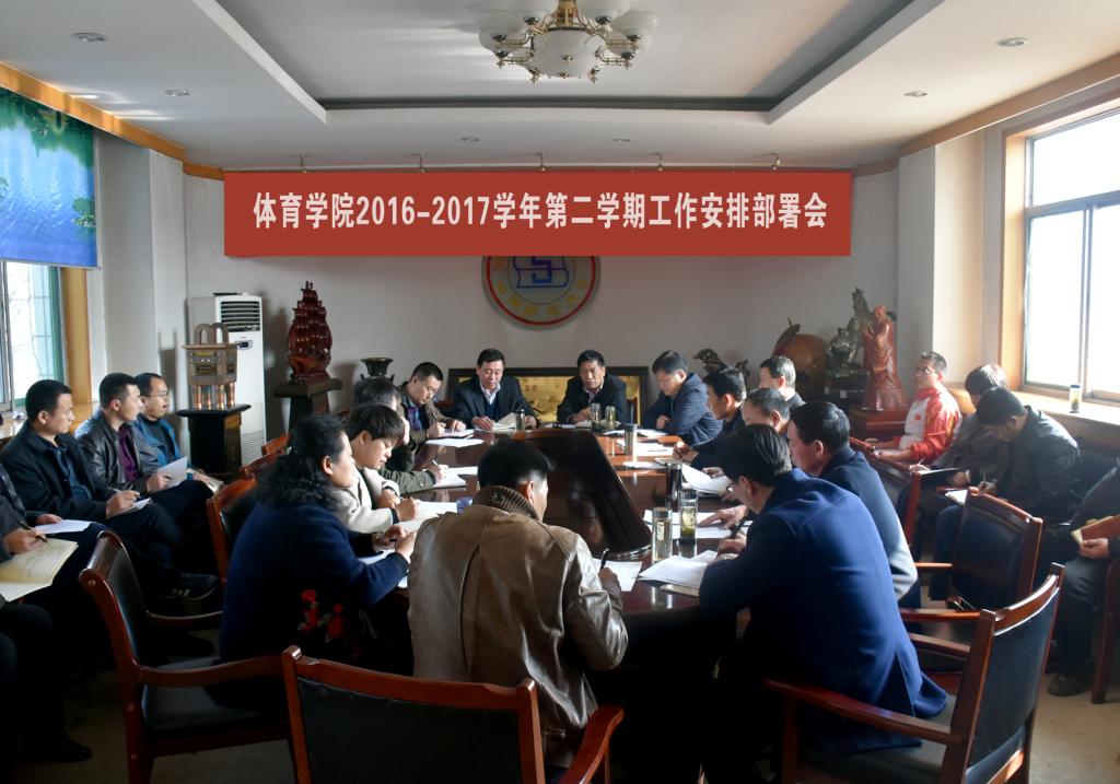 2017年2月18日下午,beet3652016-2017学年第二学期工作安排部署会议在东会议室召开,院领导、各系部科室负责人、各党支部书记、院员工会主席参加会议,重点安排了新学期开学准备工作及本学期重要任务,会议由郑旗经理主持。