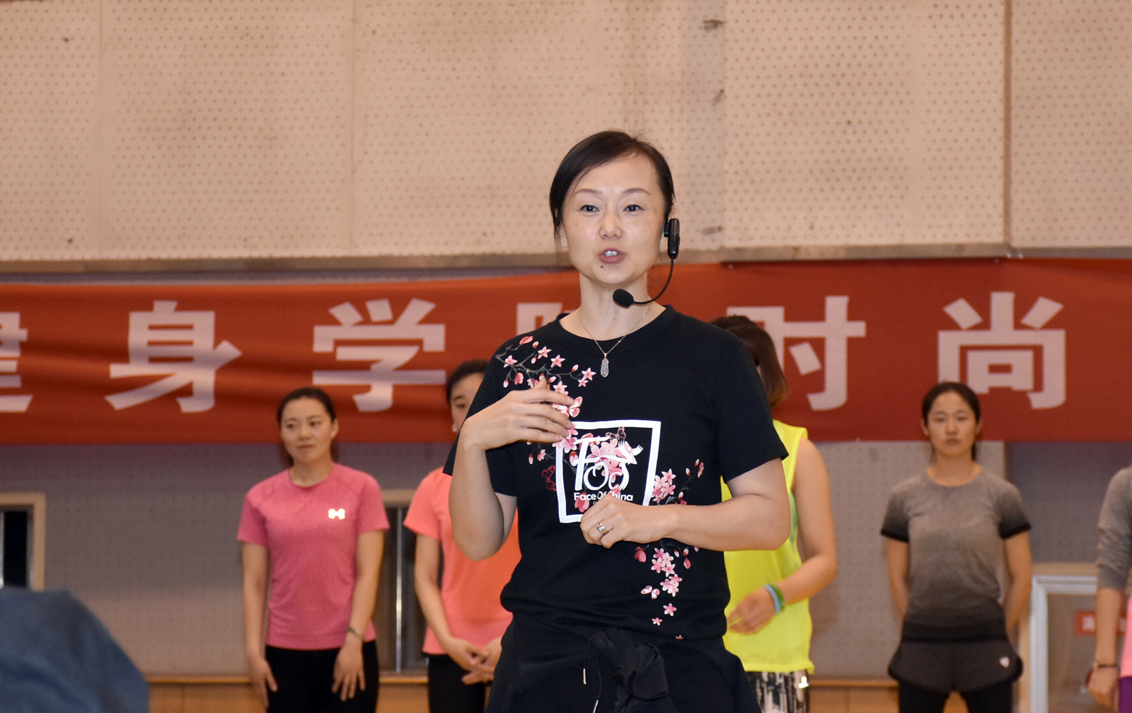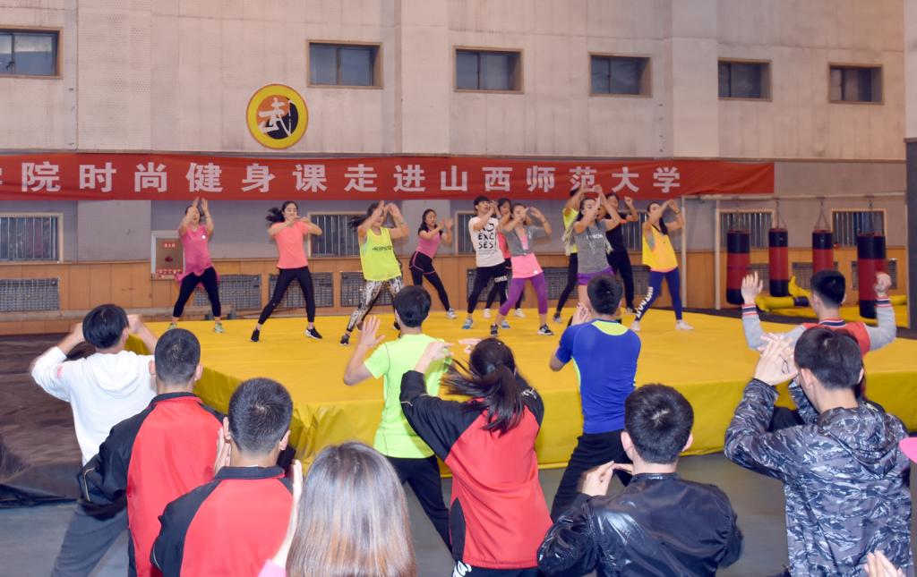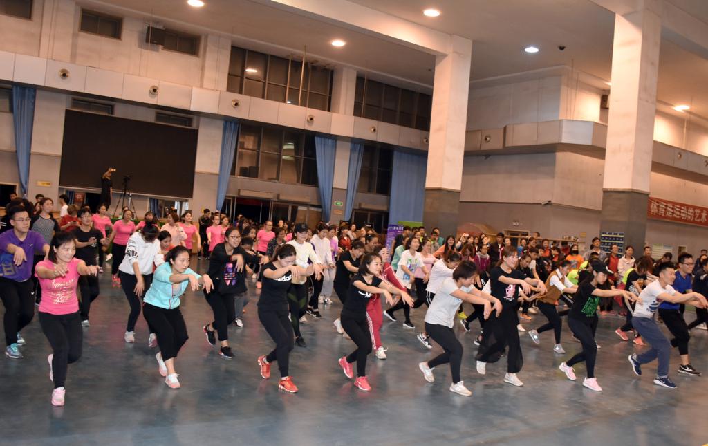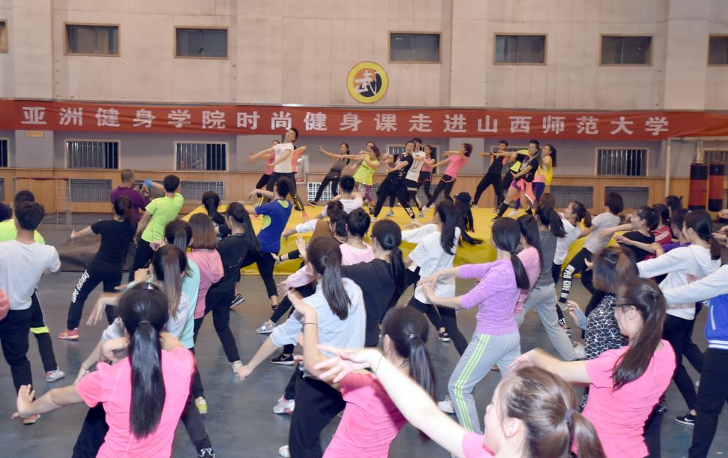 4月12日晚由亚洲健身公司经理程丹彤老师在综合馆内进行了 “时尚健身课程”的公开课。公开课由副经理王彤教授主持,beet365上百名师生参加了公开课。程老师用同学们喜欢的热身操开场,并在欢快、轻松的氛围中指导同学们进行了FOC中国风和CARDIO有氧心肺的课程体验,每个人都完全沉浸在了动感的健美操世界里,让在场的师生们领略到健美操大师的风采并感受到健美操的独特魅力。