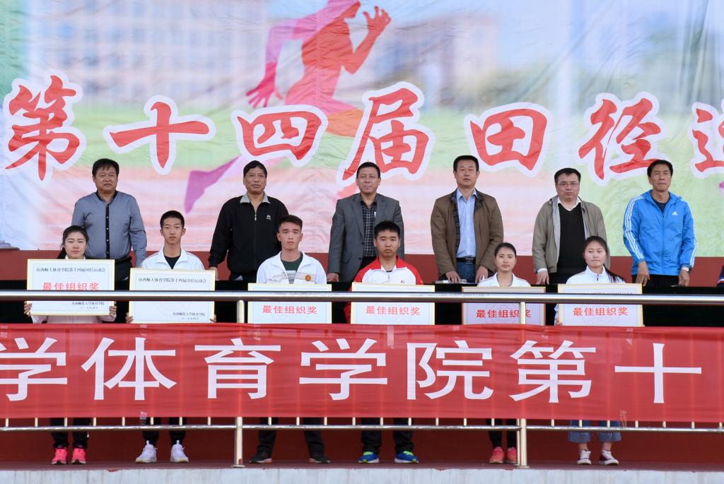 22日下午,举行运动会闭幕式,由副经理卢向阳主持。总裁判长王文武宣读了此次运动会竞赛成绩。其中运动训练系1601班孙毅同学以13.80米的好成绩打破beet36512.69米的男子铅球院记录;运动训练系1301班李明阳同学以1.56米的好成绩打破beet3651.55米的女子跳高院纪录;社会体育系1601班张森和同学以2.01米的好成绩打破beet3652米的男子跳高院纪录;运动训练系1602班张晋铭、赵帅、魏元元、闫宏同学以43.4秒的好成绩打破beet36543.9秒的男子4×100米院纪录;体育教育系1403班,社会体育系1601班,体育教育系1402班、体育教育系1404班、体育教育系1304班、体育教育系1505班、体育教育系1601班、体育教育系1501班分获甲组团体总分前八名;运动训练系1601班、1602班、1502班分获乙组团体总分前三名;民族传统体育系1601班、1602班、1501班分获丙组团体总分前三名。副经理杨永茂宣读了运动会受表彰的集体和个人的名单,共评出6个“体育道德风尚奖”,6个“最佳组织奖”,99名优秀运动员,20名优秀裁判员,30名优秀青年志愿者。院、系领导为获得各类奖项的集体和个人进行了颁奖。