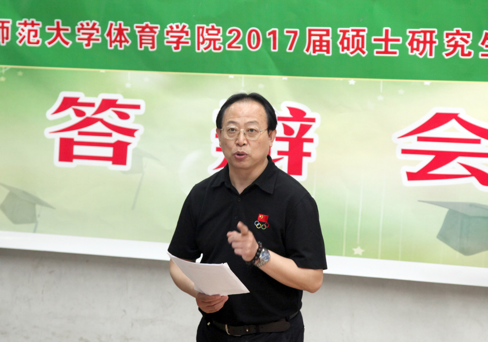 最后,体育学一级学科学位点负责人、经理郑旗教授就公司2017届硕士研究生学位论文答辩情况,从选题依据、文献综述、概念界定、基础知识、学术规范、方法选用、指导教师素养等方面进行了总结,并提出了扎实、到位、前沿、精准等要求。(邢姗姗/文 邓碾管/摄)