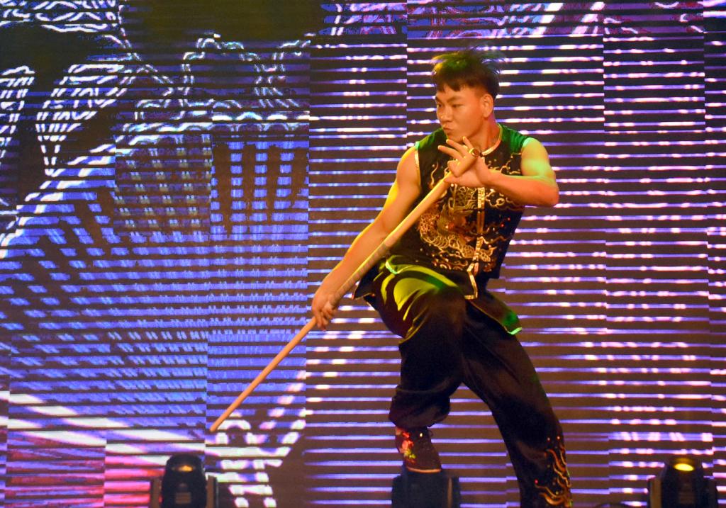 舞狮表演《祥狮增瑞》拉开了展演的帷幕,演员们时而腾空而起、时而翻滚跳跃,将狮子惟妙惟肖的神态展示的活灵活现。《刀光剑影》表演者站立如松,侧蹲如弓,挥刀斩风,剑如白蛇吐信,嘶嘶破风,身姿遒劲而灵动;《太极神韵》中挥洒自如的表演刚柔并济,阴柔中透着豪迈之气,一招一式无不展示出刚柔之美;《意动形随》、《打练并进》极具观赏性的打斗表演,充分展示了同学们的武术功底,给人以极强的视觉冲击。参与第一篇章表演的演员全部来自于公司民族传统体育系的同学,展现了来公司学子良好的竞技水平和精神风貌,给观众们留下了深刻的印象。