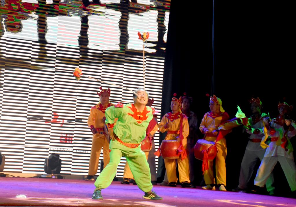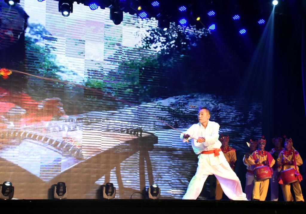 第二篇章“社会武术——武之风”中,霍州《八蜡(cha)庙》战鼓表演锣鼓齐鸣如春雷滚动,万马奔腾,气势磅礴,威武雄壮,充分地展现了我国北方民族之粗犷,剽悍,倔强,豪放的精神风貌;《洪洞通背拳》演时起伏翻江海,波澜壮阔会风云;重如泰山轻如云,劲功撼山玄通神;表演者进手而缠,随式而绕,侧身而入,闪惊巧取。洪洞通背拳是中华武林宝库中宝贵的文化遗产之一,洪洞县自古练武之风兴盛,有“中国武术之乡”美誉,县城里武馆林立,村村有人练拳,古风盎然。《洪洞通背拳》的表演者年龄最长者已是耄耋之年,年龄最小者才至垂髫,他们的表演展示了临汾市深厚的武术文化底蕴和广泛的群众武术基础。