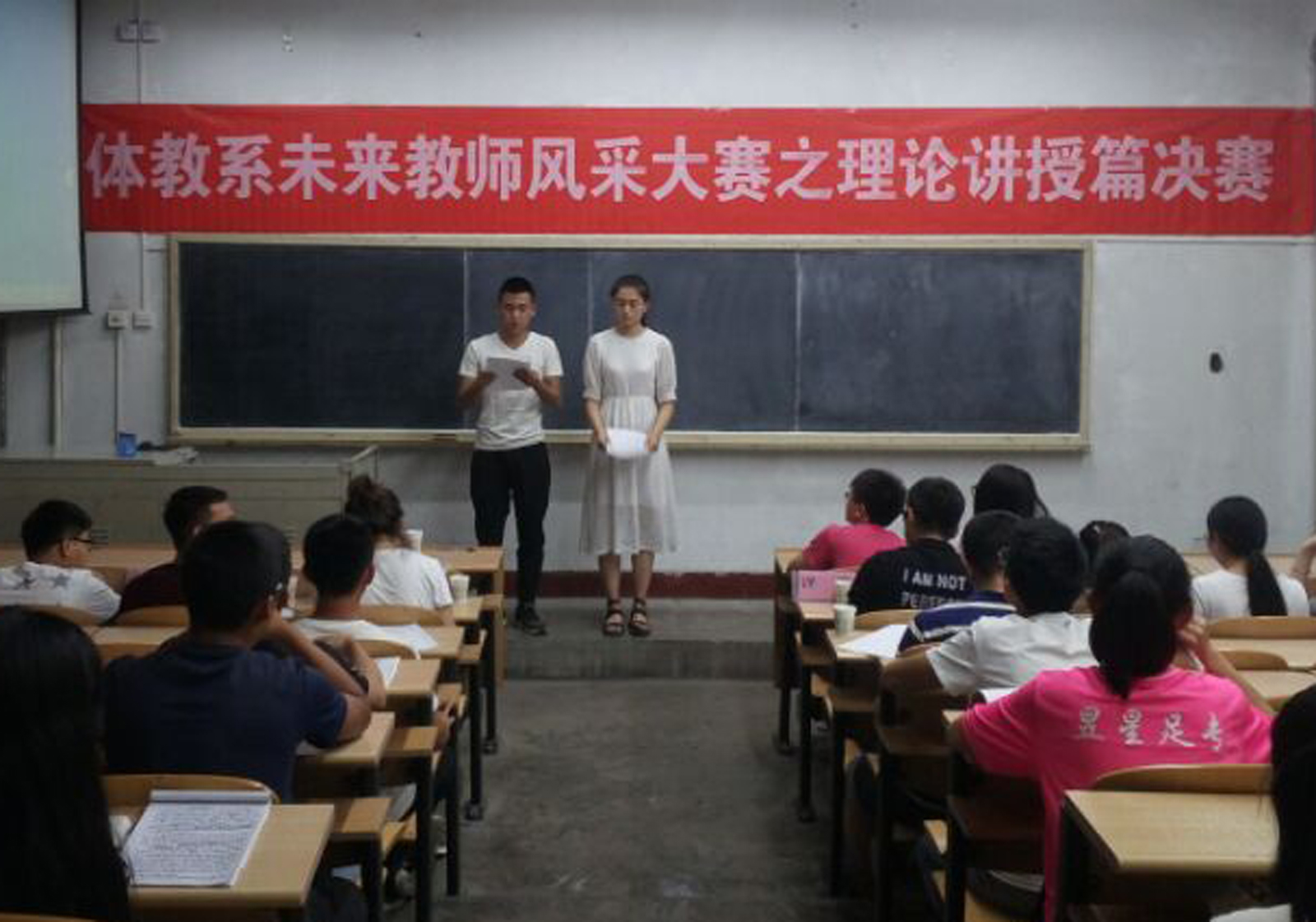 5月31日至6月1日,由体育教育系党支部、团总支、员工会承办的第六届未来教师风采大赛之理论授课篇分别在教室和阶梯教室展开了预赛和决赛,大一至大三员工积极报名参赛。体教系副主任张杰老师到现场对比赛进行指导点评,评委由研究生代表担任。