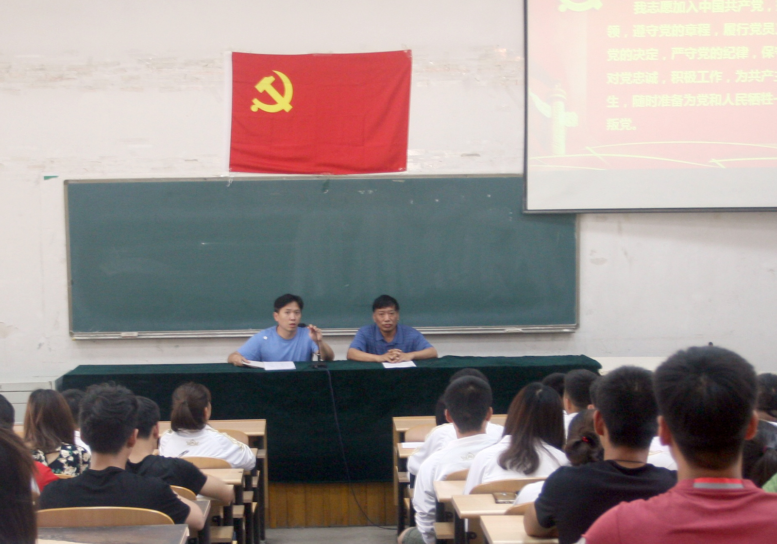 为建设高素质员工党员队伍,充分发挥员工党员在员工中的先锋模范带头作用,2017年6月14日下午beet365党委在阶一教室召开了“学党章温誓言做表率”的主题教育活动。公司党委书记李学刚、院团委书记龙勋以及beet365全体员工党员120余人参加了此次会议,会议由院团委书记龙勋主持。