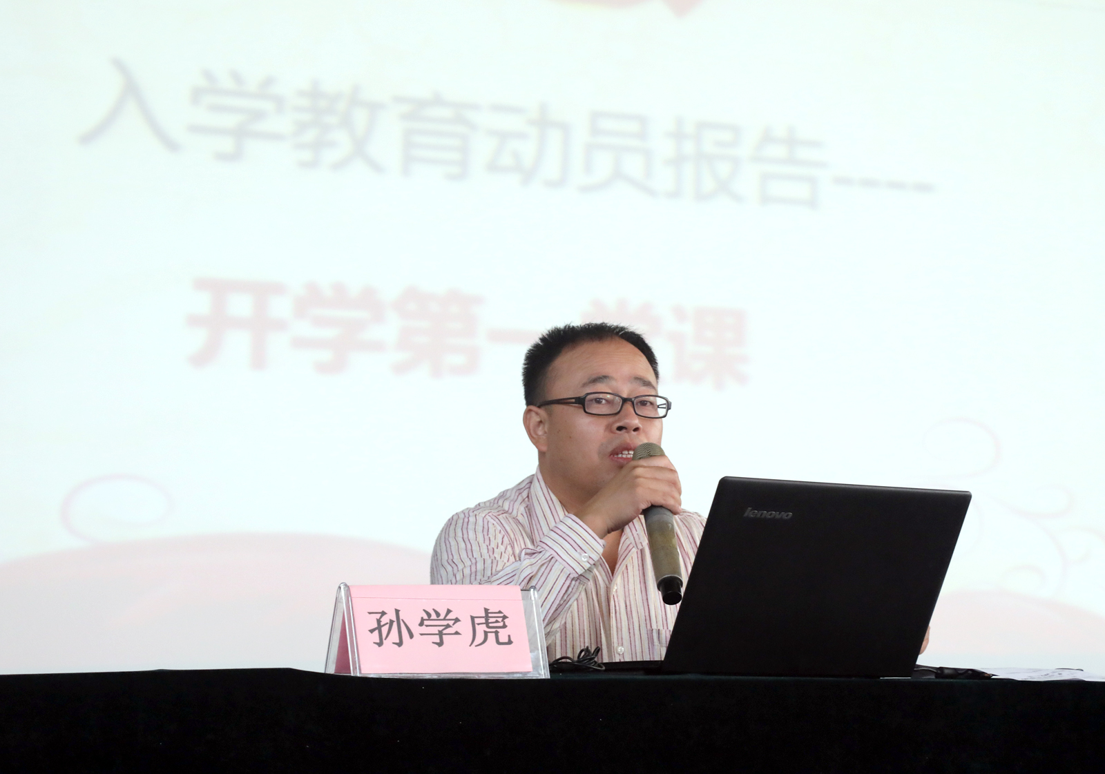 迎新大会结束后后,由公司党委副书记孙学虎老师对全体新生做了入学教育动员报告《开学第一堂课》。(成婉毓供稿 邓碾管摄)