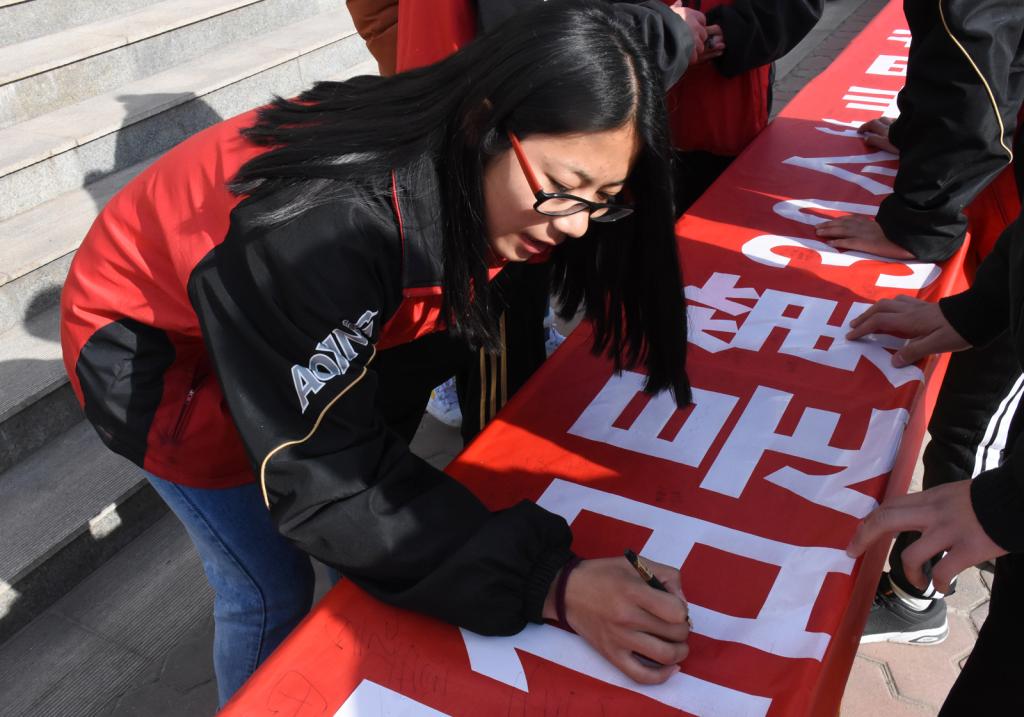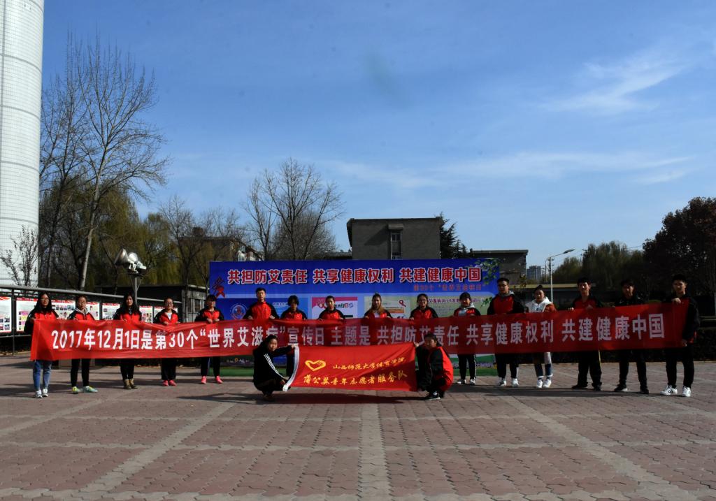 为了提高beet365员工防范艾滋病的意识,中午12点30分,由院团委主办、“蒲公英”志愿者服务队承办的“共担防艾责任,共享健康权利,共建健康中国”主题教育活动在教学楼前举办。院团委副书记程祖浩老师出席并讲话,全院400余名青年志愿者参加了活动。