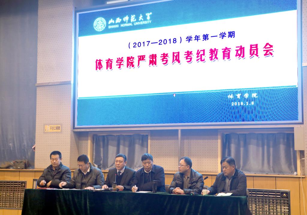 1月8日下午,beet365(2017-2018学年第一学期)严肃考风考纪动员会议在综合馆一层召开。院领导、全体教职工及员工代表参加会议。会议由经理郑旗主持。