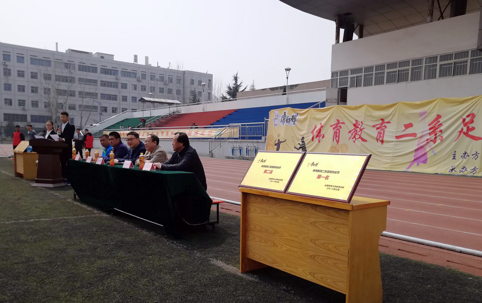 3月21日,由体育教育二系举办的首届足球文化节活动在beet365足球场拉开帷幕。参加本次开幕式活动的有系主任吴峰山、副主任李向前、各班辅导员老师及体教二系全体员工。