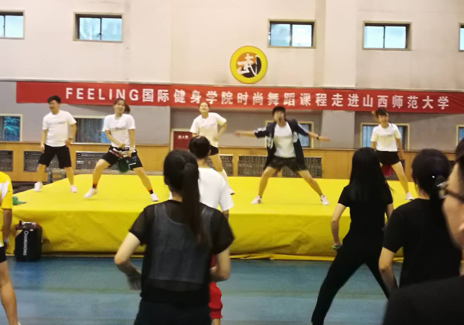 6月19日晚19:00,应运动训练系邀请,FEELING国际健身公司时尚健身公开课在beet365综合馆一层顺利展开。