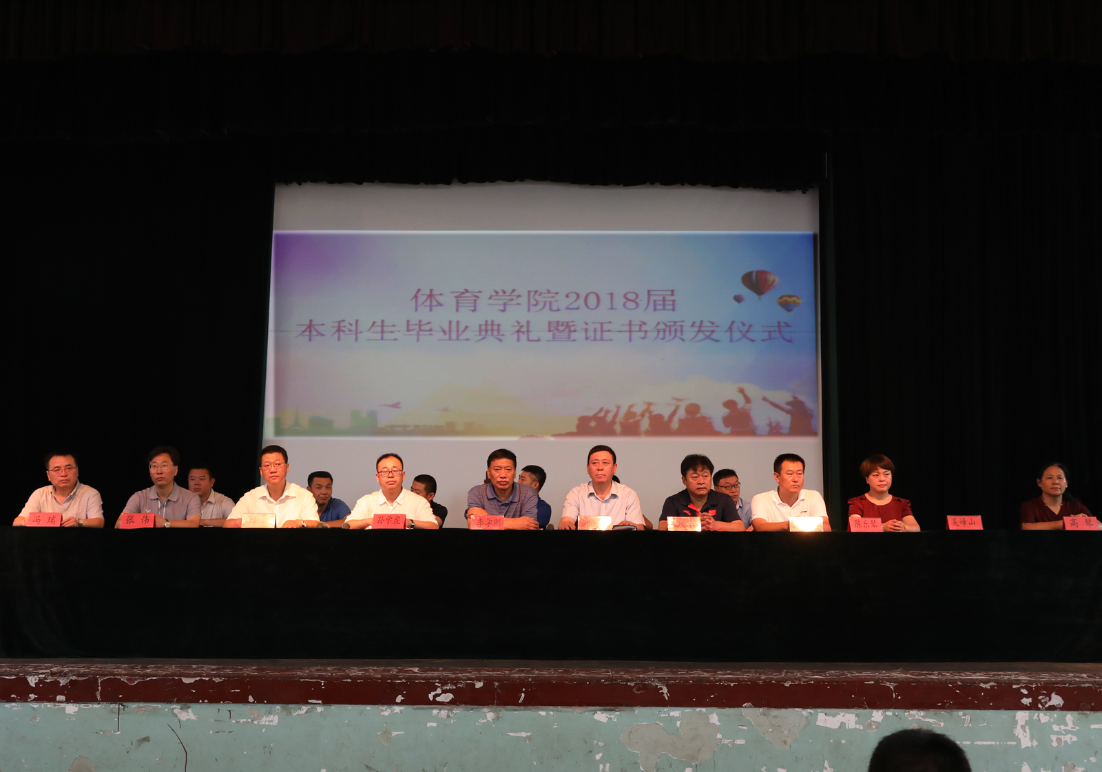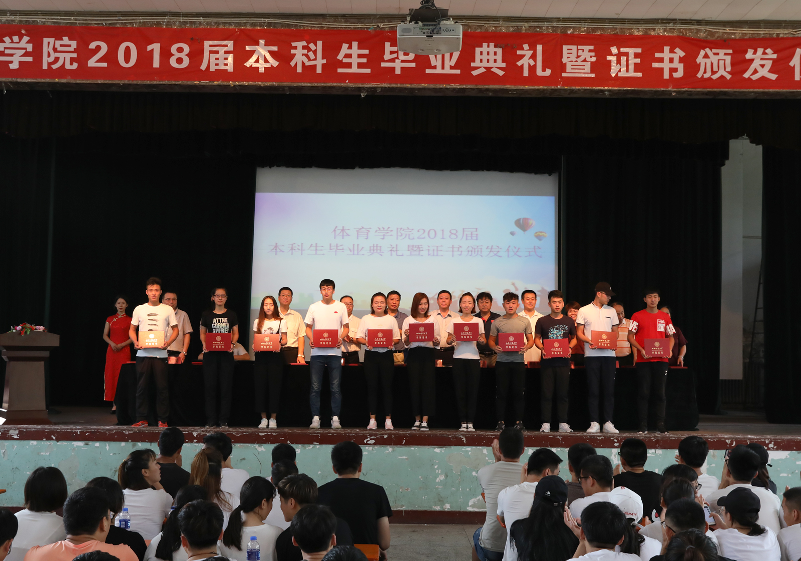 出席仪式的领导为毕业生颁发毕业证书