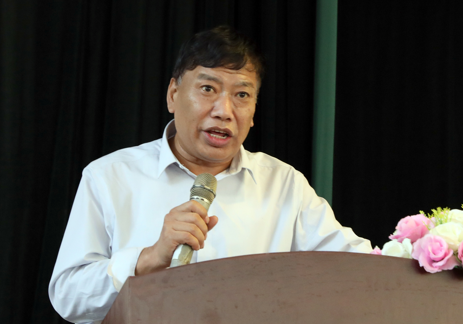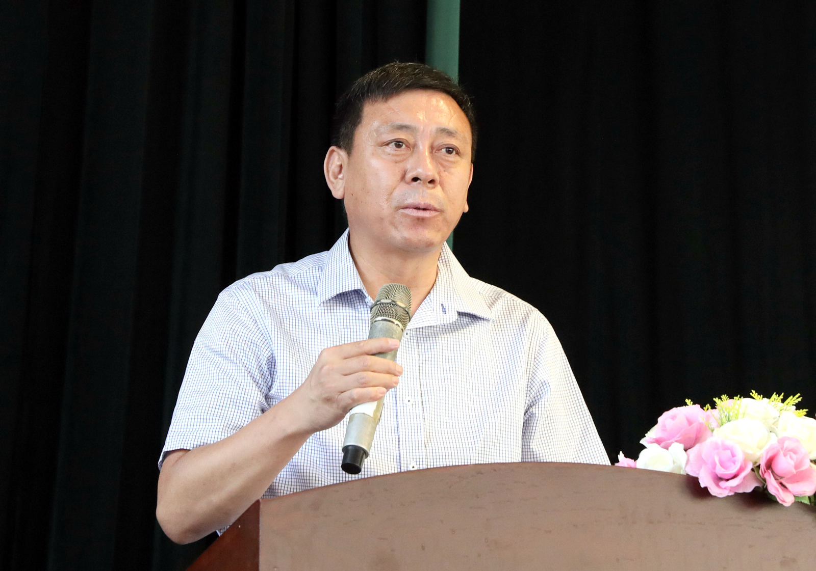 迎新大会结束后,由公司党委副书记孙学虎老师对全体新生做了入学教育动员报告《开学第一堂课》。(郑文静/文 邓碾管/摄)