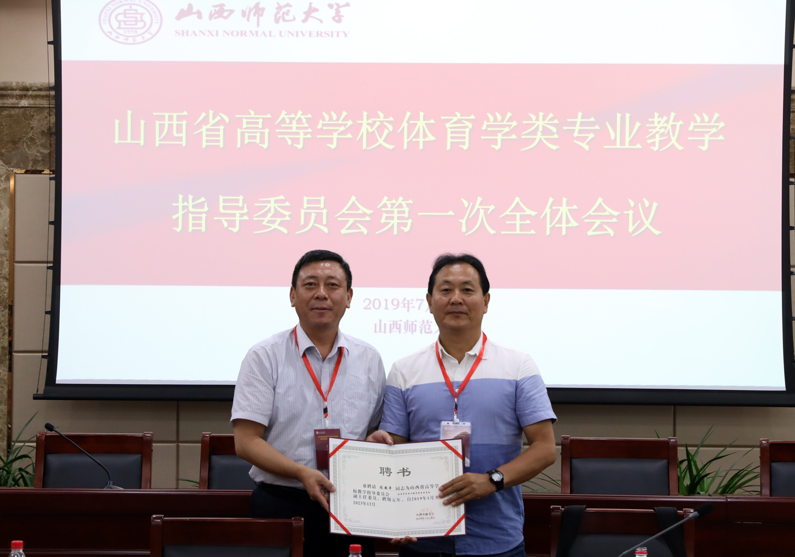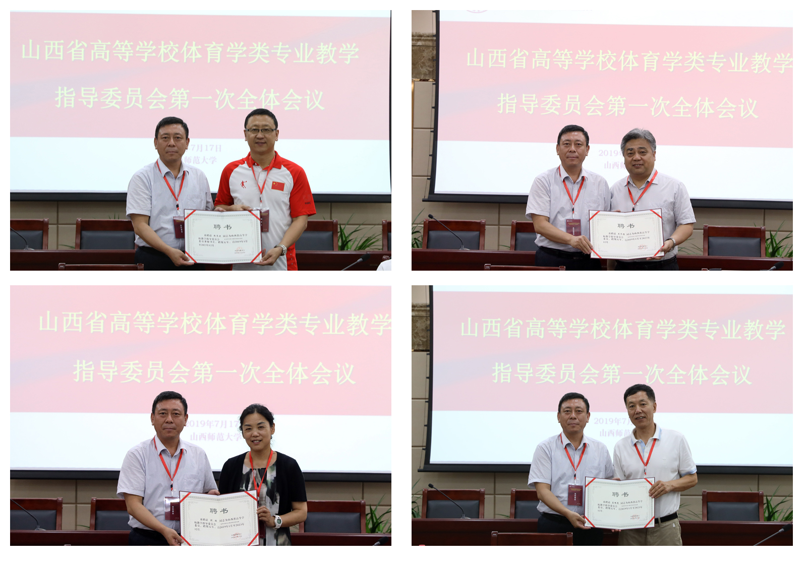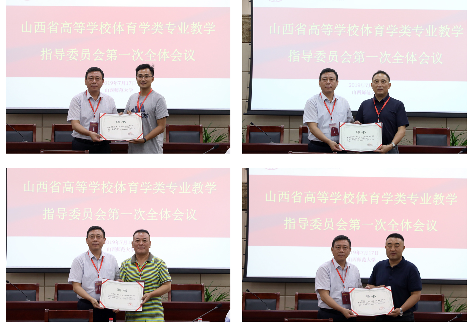 受教育厅委托,体育学类教指委秘书长山西医科大学体育部主任赵良渊宣读了《山西省教育厅关于成立2019-2023年山西省高等公司教学指导委员会的通知》及体育学类专业教指委名单,教指委主任委员郑旗教授依次向副主任委员山西大学陈安平教授、山西财大李健康教授、秘书长山西医科大学赵良渊副教授,太原理工大学史冬博教授、山西大学刘瑶教授、忻州师范公司孟明亮教授、晋中公司郝亮副教授、太原师范公司施文海副教授、长治公司柴仲学副教授、中北大学曹电康教授颁发了委员聘书,主任委员、副主任委员和秘书长分别进行了表态发言。会上,全体委员学习了《山西省高等公司教学指导委员会章程》及有关文件、会议精神,对《山西省高等公司体育学类专业教指委的工作细则(草案)》、《山西省高等公司体育学类专业教指委秘书长工作职责(草案)》、《山西省高等公司体育学类专业教指委2019-2023年工作规划及2019年下半年工作计划(草案)》进行了讨论与审议,并提出了具体建议,表决通过了有关事项。