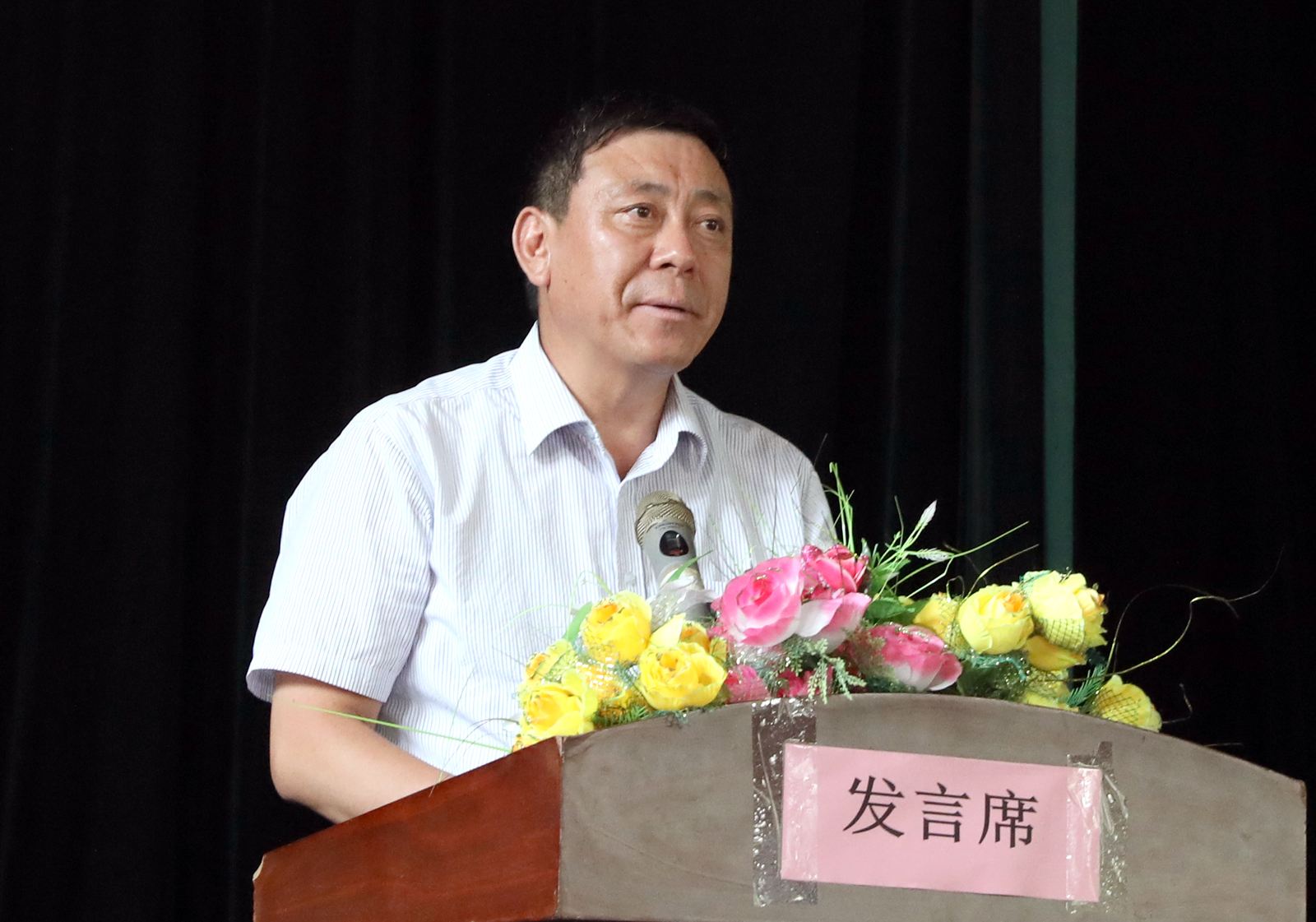 办公室主任高贯发介绍参加动员大会的院系领导