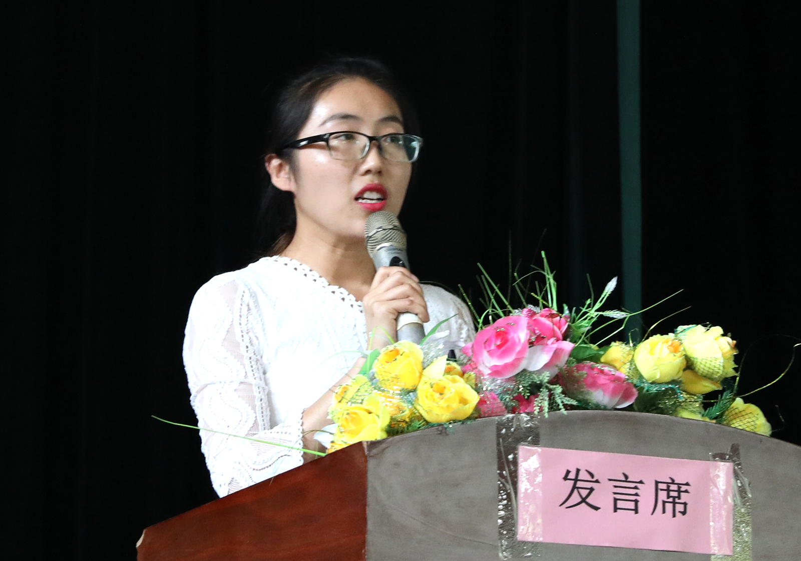 新生辅导员代表侯亚丽老师发言