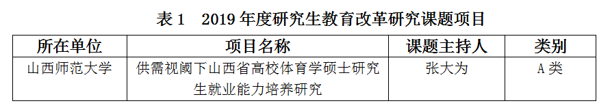 近日,山西省教育厅公布2019年准予立项的研究生教育改革课题和2019年研究生教育创新项目名单。公司获批资助研究生教育创新计划项目56项,公司获批资助项目7项,总经费1.75万元,获批研究生教改课题1项,项目清单如下: