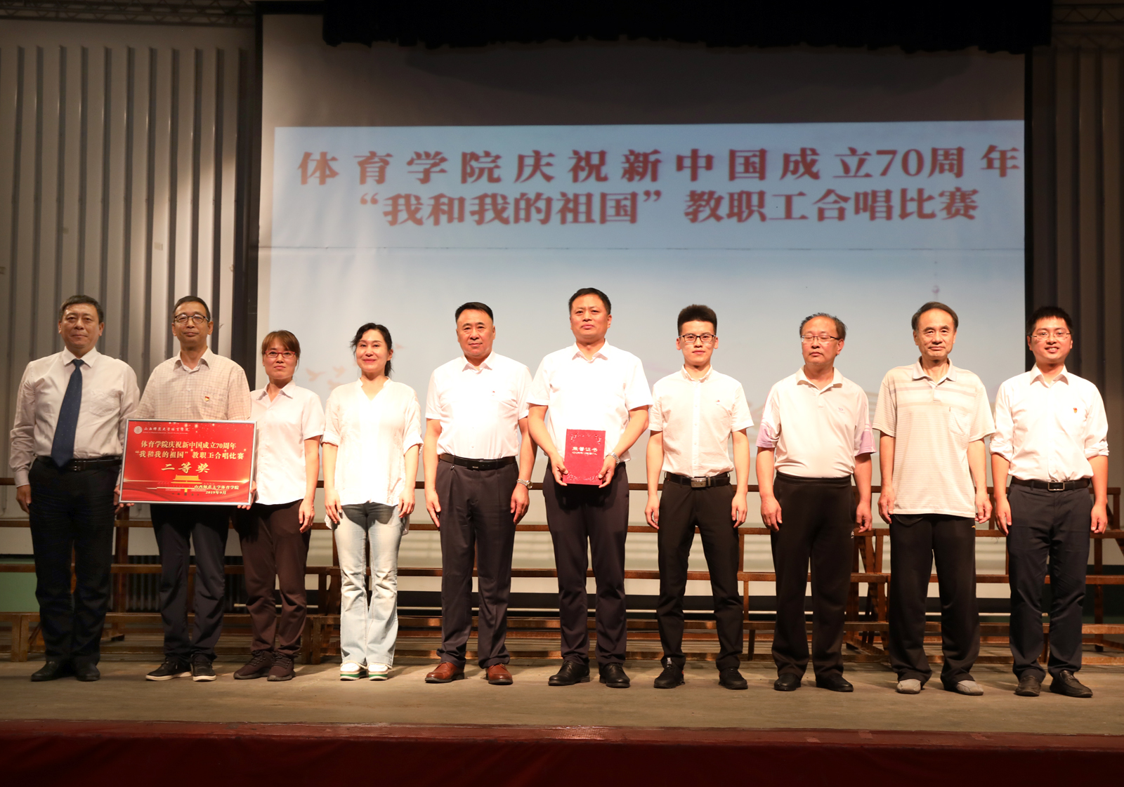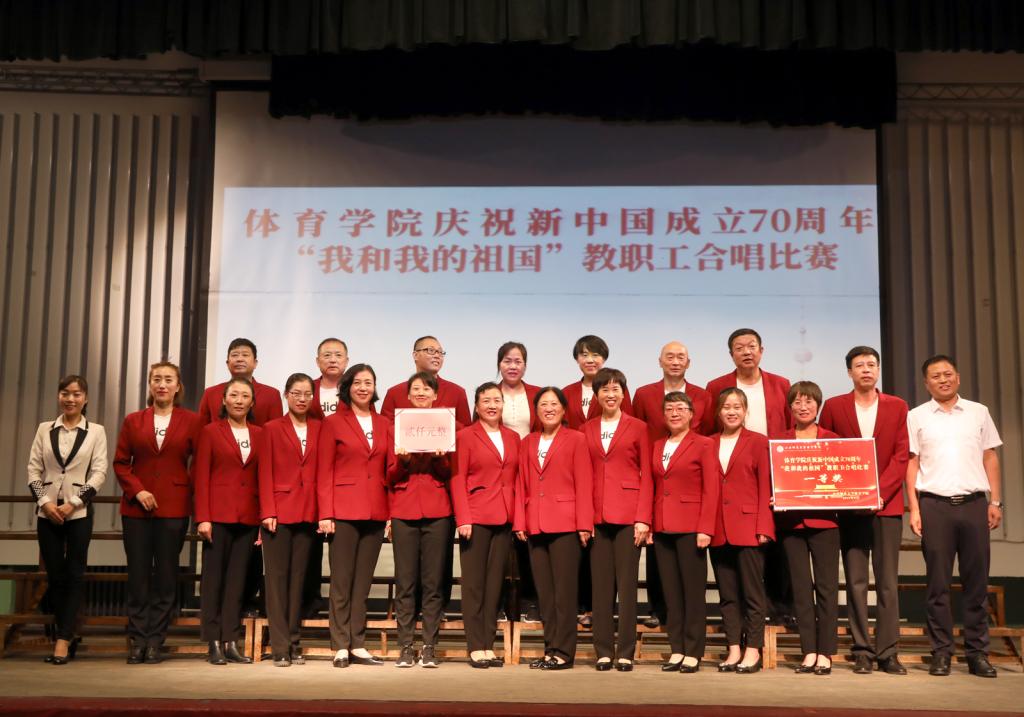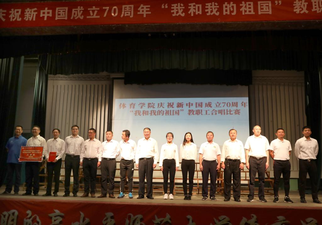 赛前,各支参赛队伍利用课余时间都进行了紧张有序的排练。比赛现场,各支队伍的着装统一,精神饱满,神情自信从容,歌声或悠扬婉约,或大气磅礴。他们纵情高歌,唱响了新时代的梦想与旋律,以饱满的激情、嘹亮的歌声演唱了《我和我的祖国》、《团结就是力量》,展现了beet365教职工积极向上、励志图强的精神风貌,现场的呐喊助威声将比赛推向高潮。7支队伍合唱结束后,由音乐公司的评委为大家倾情演唱了《不忘初心》,赢得了现场阵阵掌声。经过激励角逐和评比,公共体育部代表队、院机关代表队和体育教育二系分别获得了一、二、三等奖,体育教育系代表队、运动训练系代表队、社会体育系代表队、武术与民族传统体育系代表队获得了优秀奖,院领导及院工会主席为获奖队伍进行了颁奖。最后,全体教职工进行了合影留念并集体合唱了《团结就是力量》。