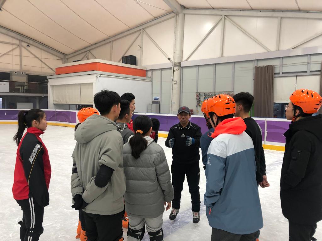 此次冰上运动培训周期为5天,上午为冰上运动理论指导,下午为冰上实践及现场指导。理论课以普及冰上运动和冬奥会知识为主题,培训内容包括向学员们讲授滑冰运动的起源与发展、冬奥会滑冰比赛项目分类及规则等理论课,在实践环节,由专业教练带领同学们进行了滑冰课体验,培训课结合冰上基本动作要领的讲解,让每位同学都能掌握滑冰教学的入门基础技能,感受到冰上运动的乐趣。