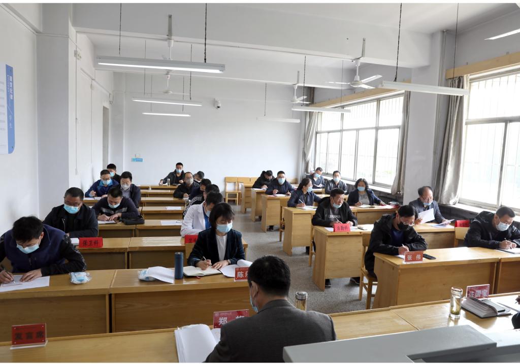 4月15日上午,公司在教学楼6教室传达2020年公司重点工作部署会议精神,安排毕业年级返校和本学期工作。各系部、科室负责人及三校区相关单位负责人参加会议,会议由公司党委书记许国宝主持。