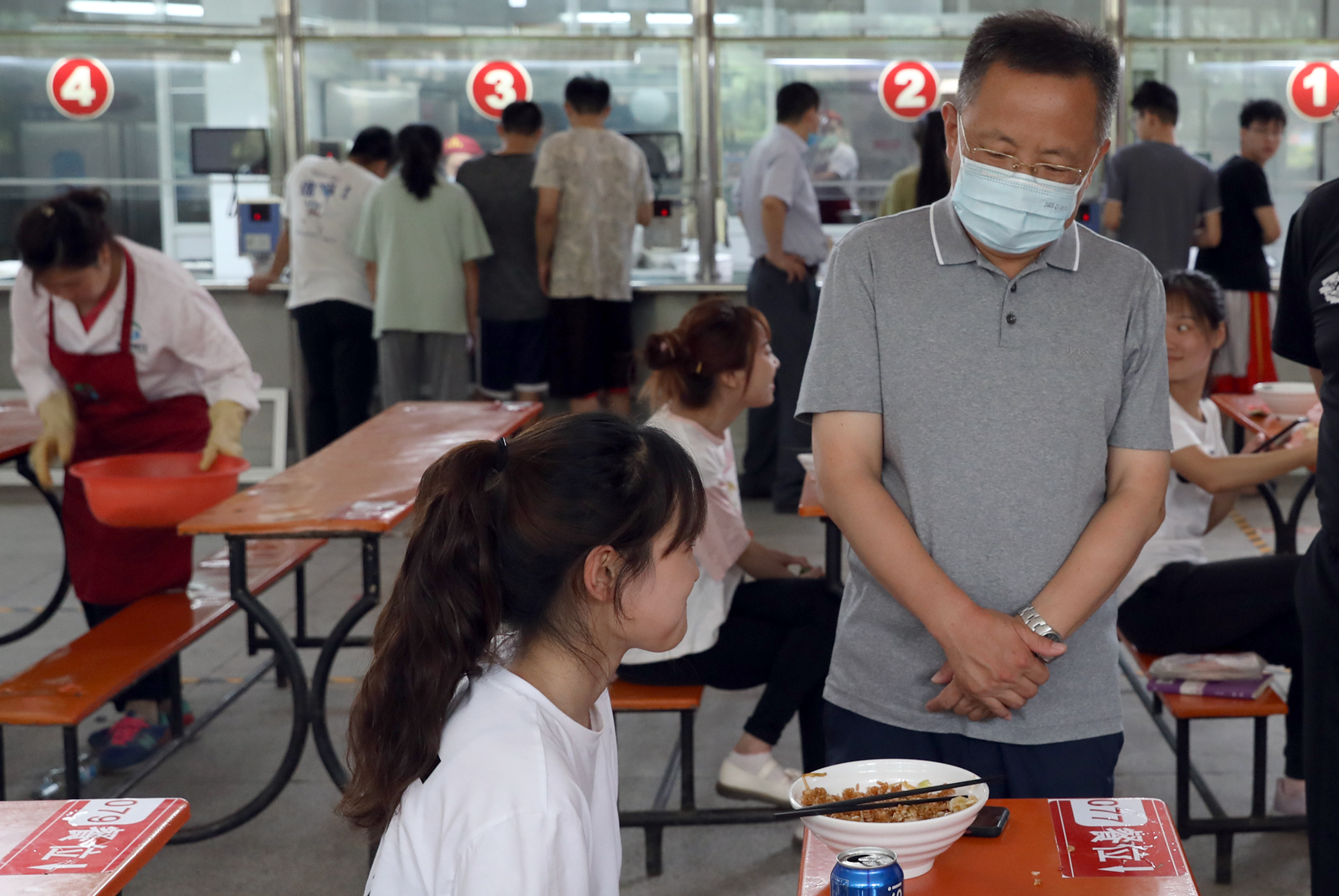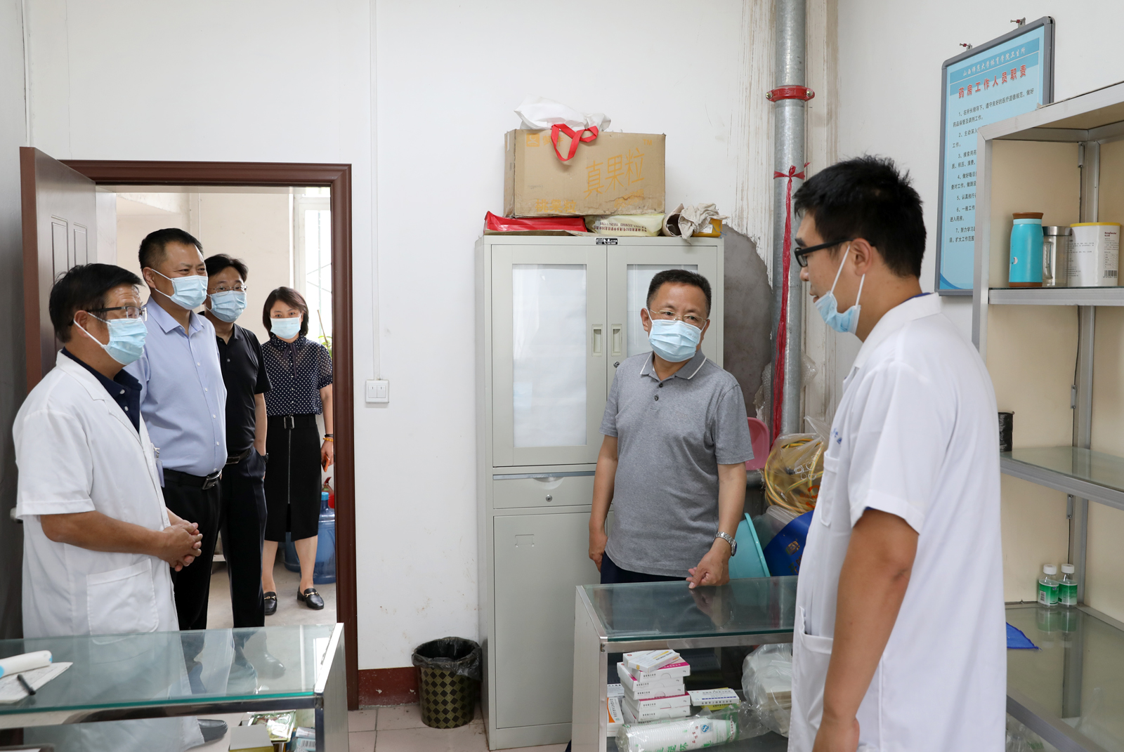 6月8日上午,副董事长王云一行来公司调研,院领导及相关科室负责人参加调研。副董事长王云一行先后对公司栅栏墙、医疗室、食堂等地方进行了调研,对调研过程中所发现的问题及时提出相应整改措施与解决意见。他强调,随着疫情防控进入常态化,必须时刻紧绷食品安全这根弦,任何时候都不能松懈;要强化服务意识,做好沟通对接工作,增强安全排查及设施完善工作的时效性,为师生积极营造安全稳定和谐的工作学习环境。(院办/文 邓碾管/摄影)
