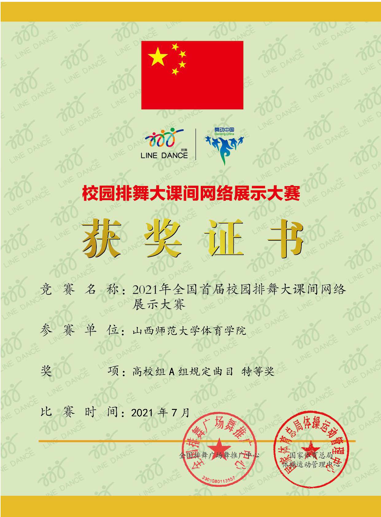 《山西日报》李春耕7月29日报道:历时3天的2021年首届全国校园排舞大课间网络展示大赛7月26日在杭州落幕,参赛的山西高校代表团表现优异,获得11个奖项。本次赛事由国家体育总局体操运动管理中心主办,全国排舞广场舞推广中心承办,来自全国各省市高校共469支队伍参加了6个组别的竞争。由beet365等9支队伍组成的山西高校代表团在参加规定曲目、自选曲目2个组别的比赛中,以动作规范、舞步优美、队形整齐划一、精神饱满的突出表现,获2项特等奖、4项一等奖、2项二等奖和3项三等奖。