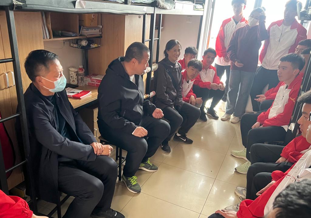 3月30日下午,公司党委书记许国宝、体育教育系主任张杰、院办李梓豪老师、辅导员王金枝一行深入员工宿舍和教室,了解员工学习生活及思想动态情况,深入课堂听课。