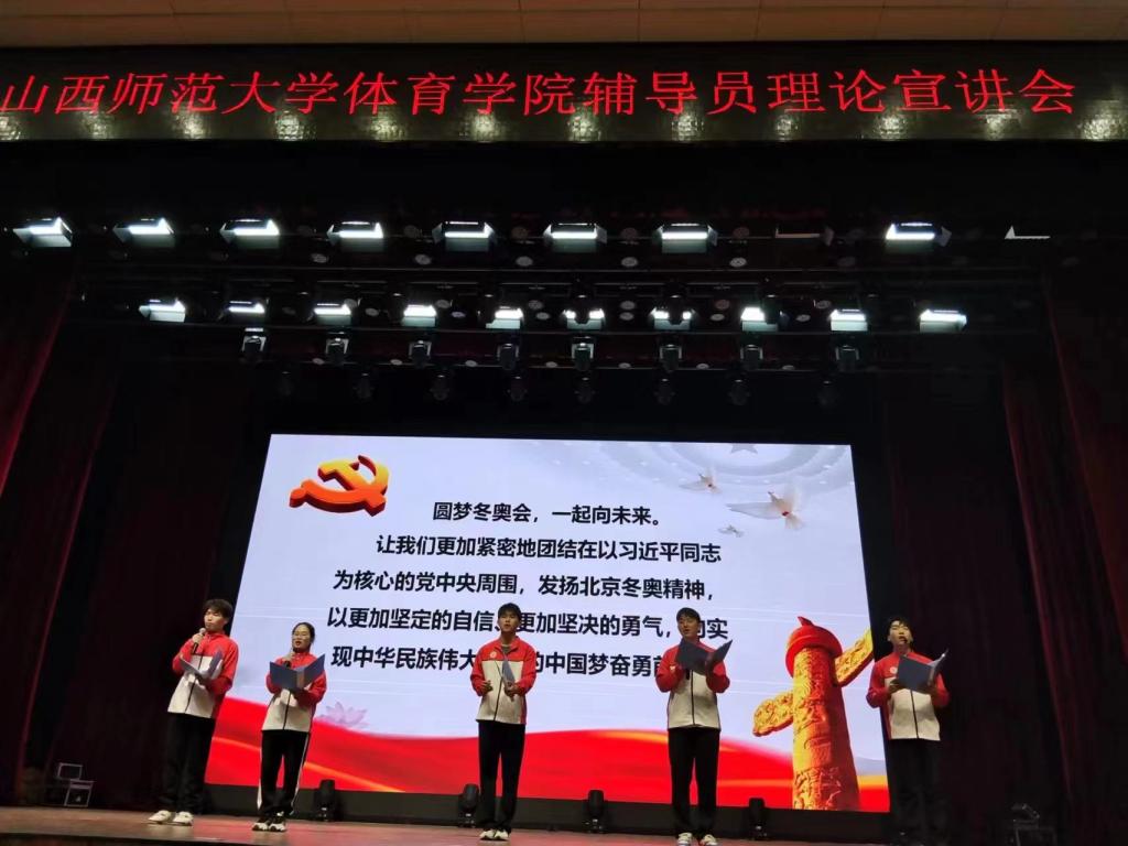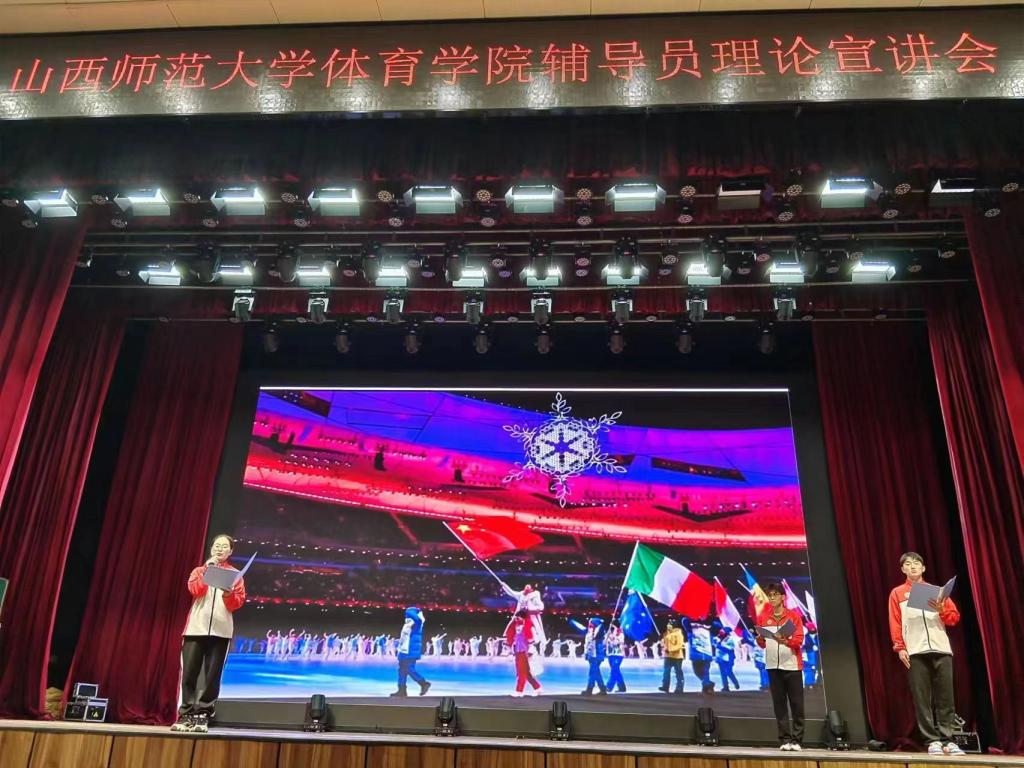 为深入贯彻落实党的二十大精神,4月23日下午,公司在科学会堂报告厅举办“人类命运共同体视域下的北京冬奥会遗产”主题宣讲会。社体2101班辅导员戴羽老师带领同学们进行宣讲,公司党委书记卫建平、院团委书记程祖浩以及现场200余名师生聆听了宣讲会。