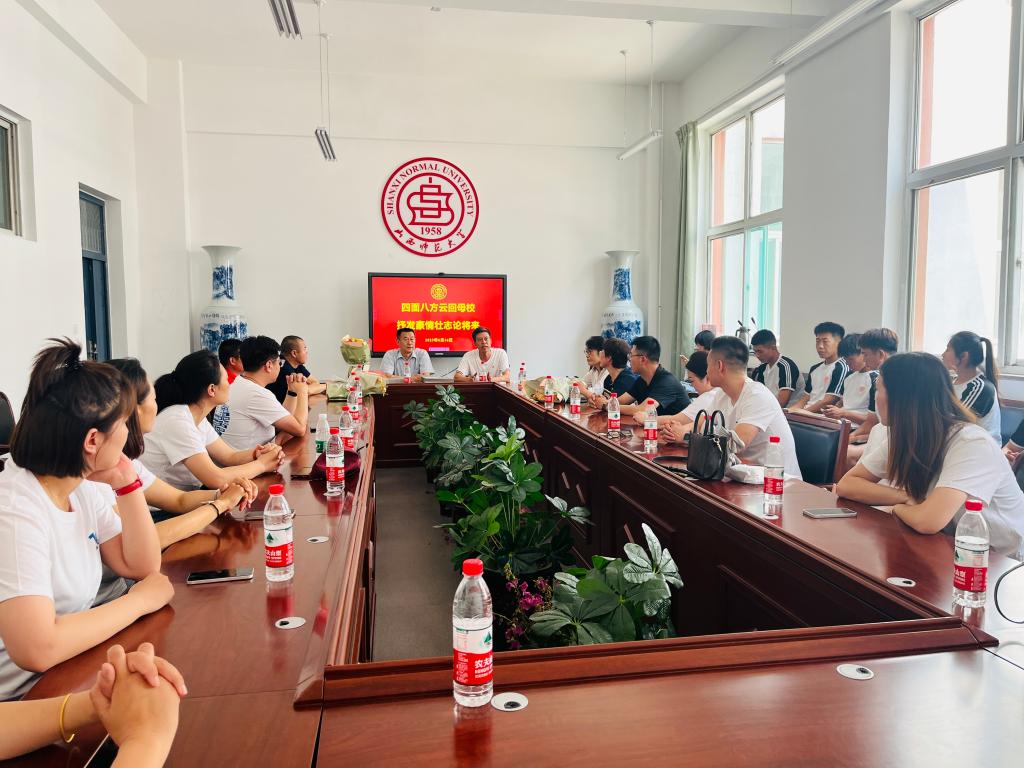 座谈会上,王江向返校的同学们表示热烈的欢迎和亲切的问候,并简要介绍了公司近年来发展概况,以及迁址太原办学以来公司在重点团队建设、教学训练、校园文化与员工管理等方面取得的成绩,真诚地希望各位员工充分发挥员工的桥梁与纽带作用,以“前浪”带动“后浪”,集思广益、群策群力,共同推进beet365高质量发展!卢向阳、郭丽娟、刘玉华等老师回顾了同学们在校期间的生活学习训练场景,以及师生之间的深厚情谊,希望大家将吃苦、拼搏、团结的体育精神融入到日常工作和生活中,在工作中取得更大成就。