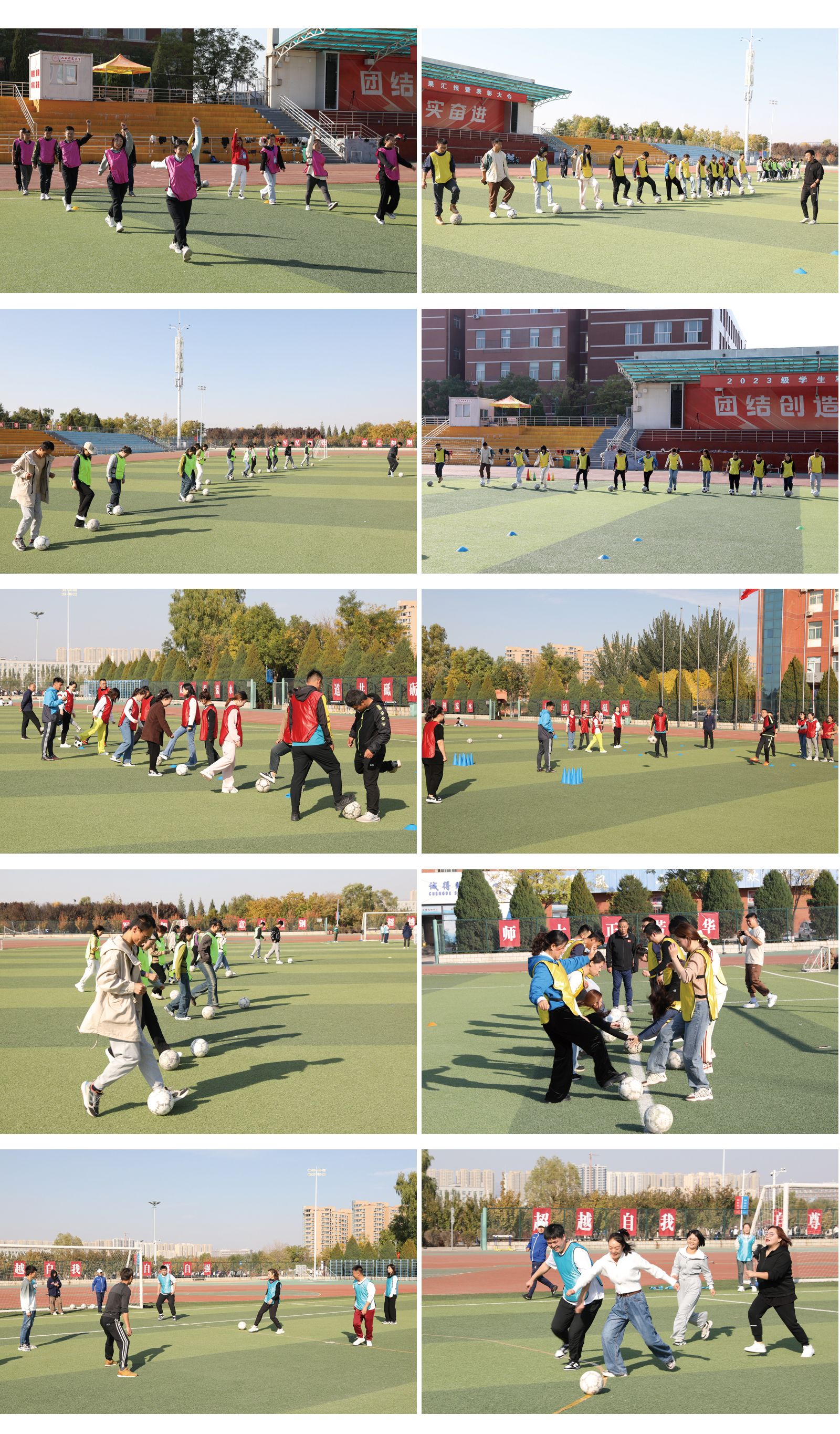 教学实训课堂上,山西师大沈国征副教授、山西大学王豫东副教授、晋中公司郭江副教授、忻州师范公司周宁副教授、太原公司药宏慧老师在公司足球场对各位学员进行了幼儿足球教学活动基本规范实训现场教学,从幼儿足球教学目标、足球基本技术、动作技能等方面进行了示范讲解。在幼儿足球教学经验分享单元,来自太原、临汾、大同、运城等5个地市的培训学员代表分享了各自幼儿园开展足球教学的经验、方法和遇到的困惑,指导教师进行了针对性的讲解。