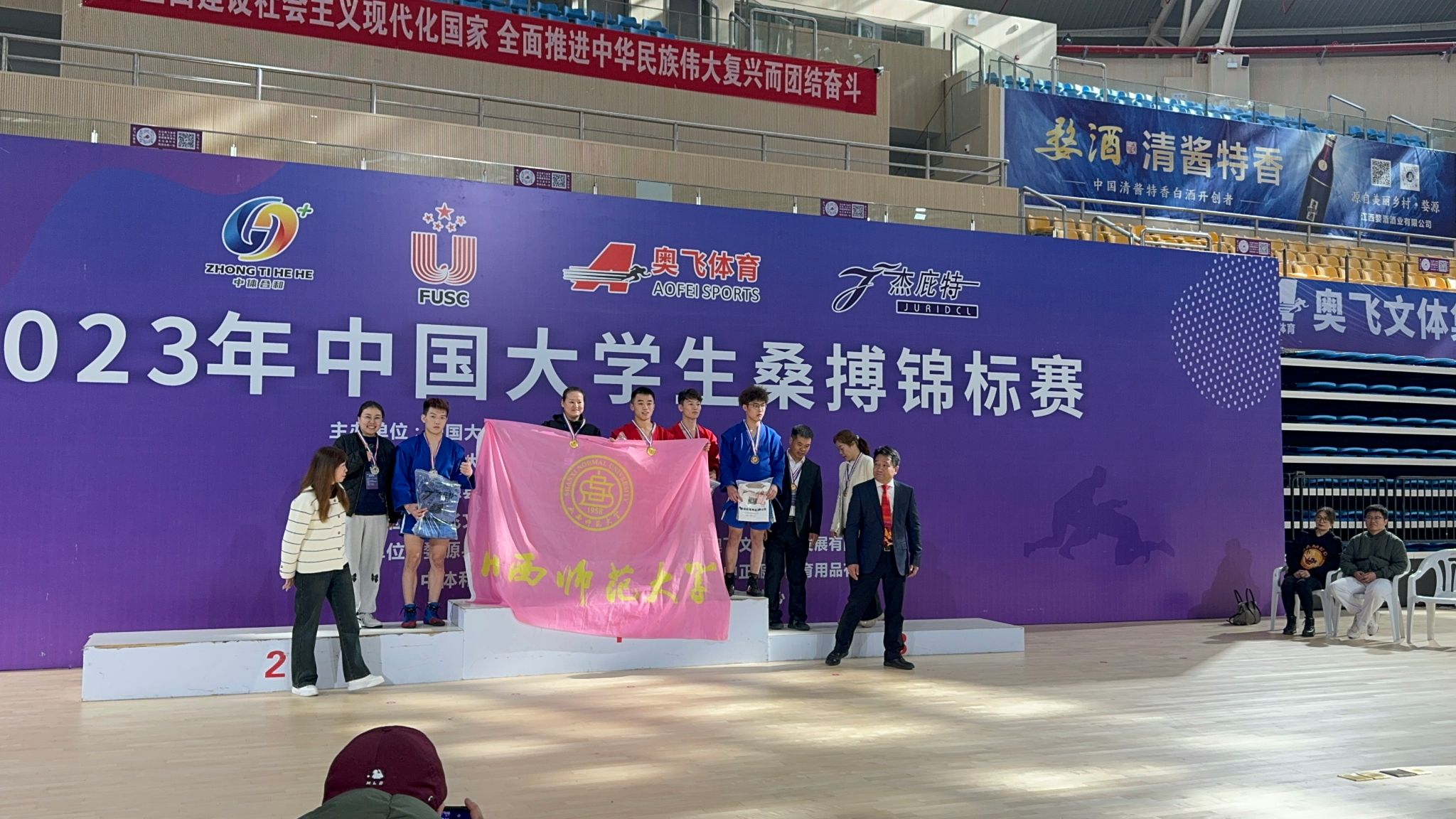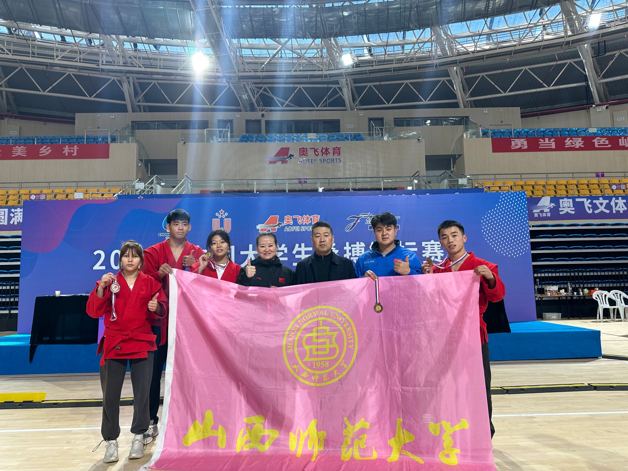 12月3日-7日,首届中国老员工桑搏锦标赛在江西婺源举行,来自武汉beet365、山东beet365、吉林beet365等高校的近200名运动员同场竞技。公司运动健儿在民族传统体育系系主任权黎明、教师王朝丽、卢煜带领下,武术与民族传统体育专业员工董宁宁获得男子丙组58kg第一名,王腾飞获得79kg第二名;运动训练专业员工杨晓蝶获得女子丙组50kg第二名,高伊桐获得65kg第三名的优异成绩。此次桑搏比赛由中国老员工体育协会主办,在全国属于首次,公司运动健儿在组队时间短,训练条件艰苦的情况下,克服困难,不畏强手,顽强拼搏,取得了优异成绩,也是对新兴体育项目的一次探索性尝试,为公司摔柔类项目多元化发展积累了宝贵经验。(院办供稿)