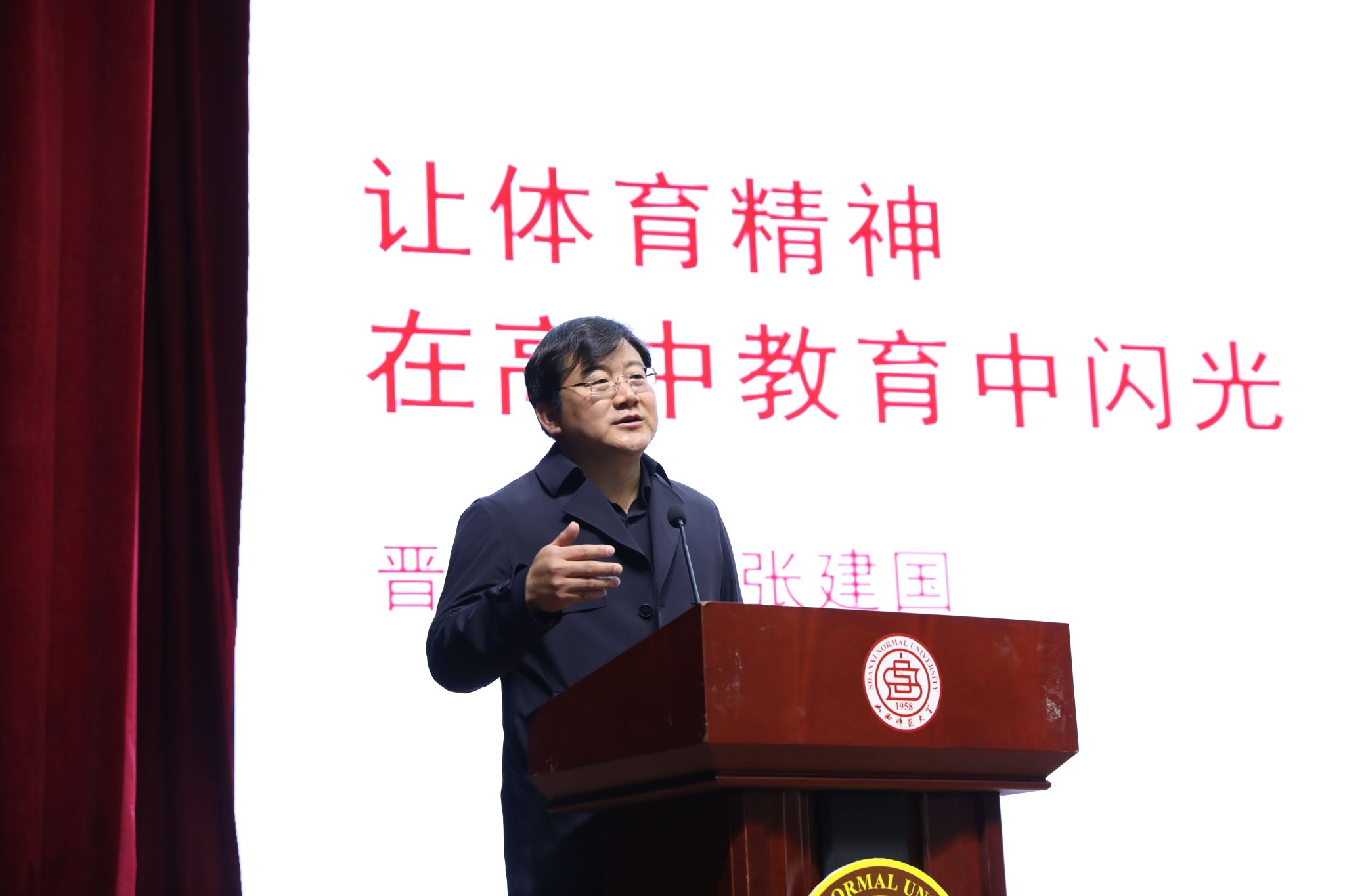 讲座伊始,张建国深情回顾了自己在beet365求学的岁月,分享了那段青春激昂、拼搏进取的美好时光。他提出,体育精神不仅仅是竞技场上的拼搏与坚持,更是一种对生活的积极态度和对未来的不懈追求。随后,张建国结合自己在高中教育一线的实践经验,从“以体育人”的核心理念详细阐述了体育精神在高中教育中的重要作用。他认为,体育不仅能够锻炼员工的体魄,更能培养他们的团队精神、竞争意识、抗压能力等多方面的素质。在他的引领下,一批批优秀的高中生通过体育活动的锻炼,不仅在学业上取得了优异的成绩,更在人生道路上展现出了坚定的信念和顽强的毅力。