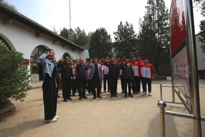 接着来到了晋绥军区司令部旧址,党员们参观了毛泽东、周恩来、贺龙等老一辈革命家曾经工作和生活的地方,更加真实地感受到当年老一辈革命家为了新中国的胜利所付出的艰辛和不易。静谧的院子里一排窑洞向游客述说着“当年的故事”,这是毛泽东、周恩来、任弼时等同志的“进京赶考”的一“站”。在此期间,毛泽东同志领导开展了大量的革命活动,在晋绥干部会议发表讲话,与晋绥日报编辑人员进行谈话,还召开了多次座谈会,并亲笔题写了土地改革和新民主主义革命时期的总路线和总政策。参观完毕后,在窑洞前,参加活动的全体党员同志列队肃立,面向党旗,高举右拳,“我志愿加入中国共产党,拥护党的纲领……”,庄严宣誓,用铿锵有力的话语,再次重温矢志不渝跟党走的决心。